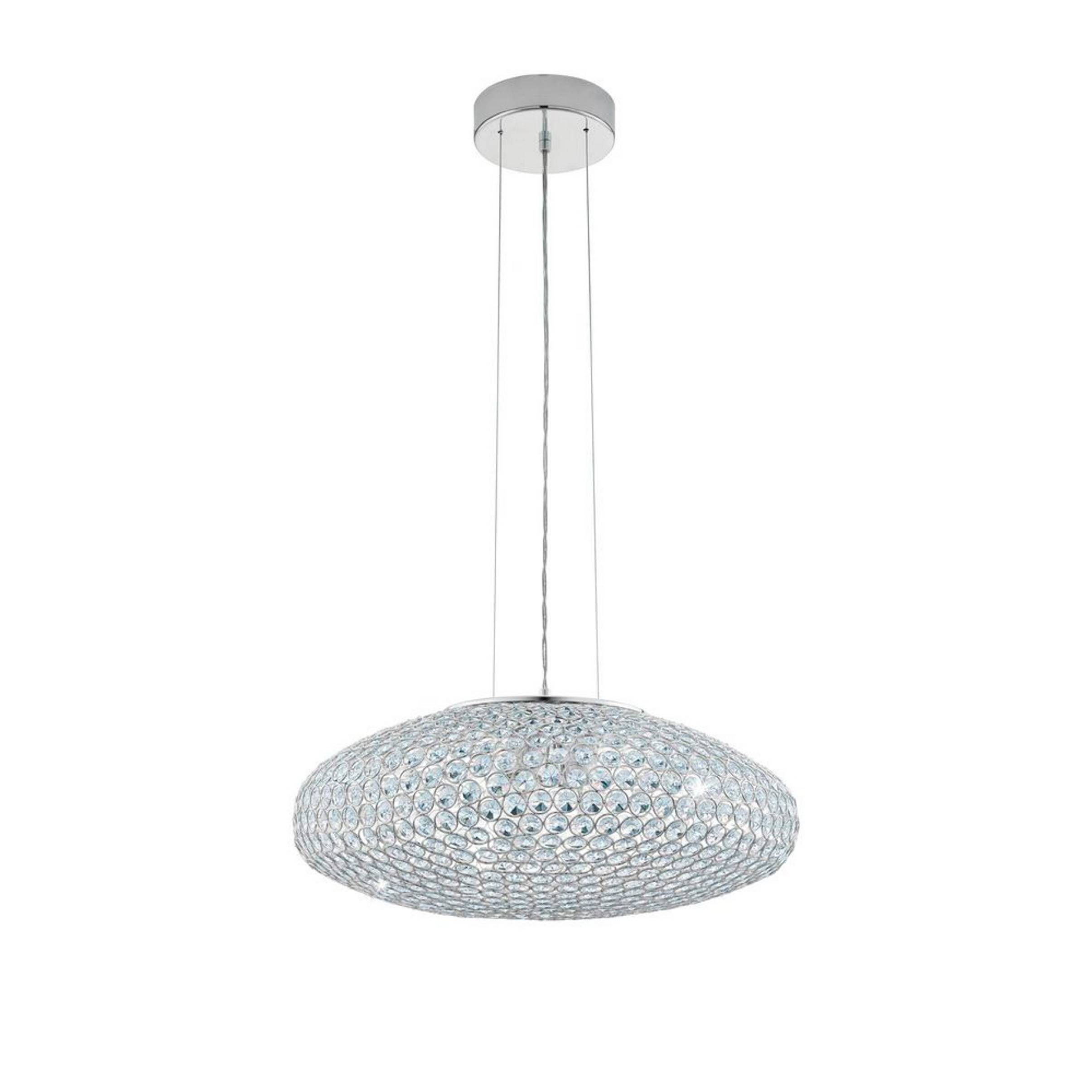 clemente -pendlen har et kromfarvet metalhus og en hængende oval lampeskærm lavet af rækker af klart krystalinspireret slebet glas. Krystalelementerne skaber et funklende look af høj kvalitet, når lyset er tændt. Pendlen passer elegant ind i det moderne interiør og skaber en attraktiv atmosfære i ethvert rum, uanset om det er i stuen eller over bordet i spisestuen. Produktet har e27-lampeholdere og kræver 3 x e27-pærer.