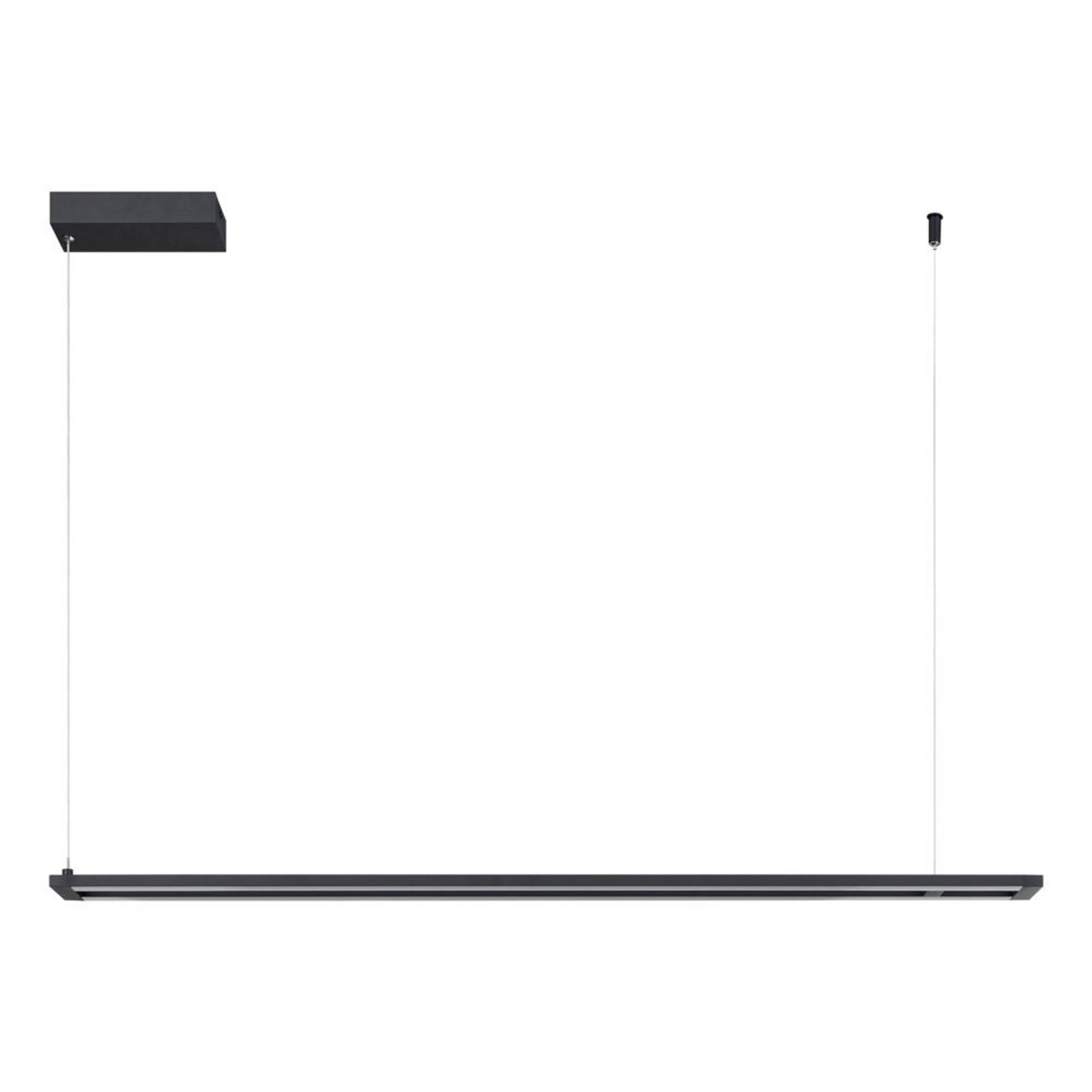 amontillado led-pendlen har en lineær, ophængt metalkrop i black kombineret med to white plastpaneler, der løber parallelt. De integrerede lysdioder giver et behageligt varmt white lys og kan dæmpes ved hjælp af en koordinerende drejedæmper på væggen. Pendlen passer ind i næsten alle boligtendenser og skaber en moderne belysning i stuen eller spisestuen over spisebordet.