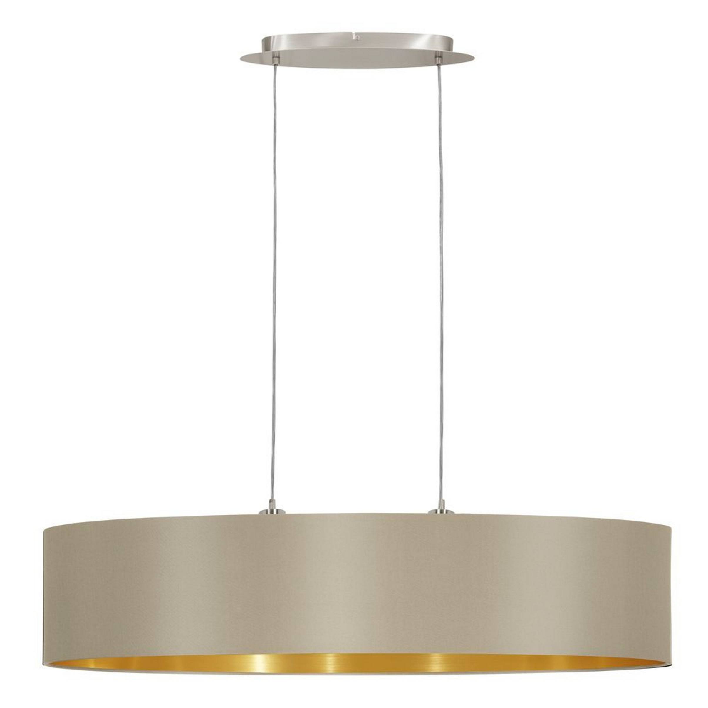 Forbedr dit rum with eglo maserlo pendel med et slankt design with en tekstilskærm i taupe og guld og et kabinet i mat nikkel. Perfekt til at sætte et sofistikeret præg på ethvert rum.