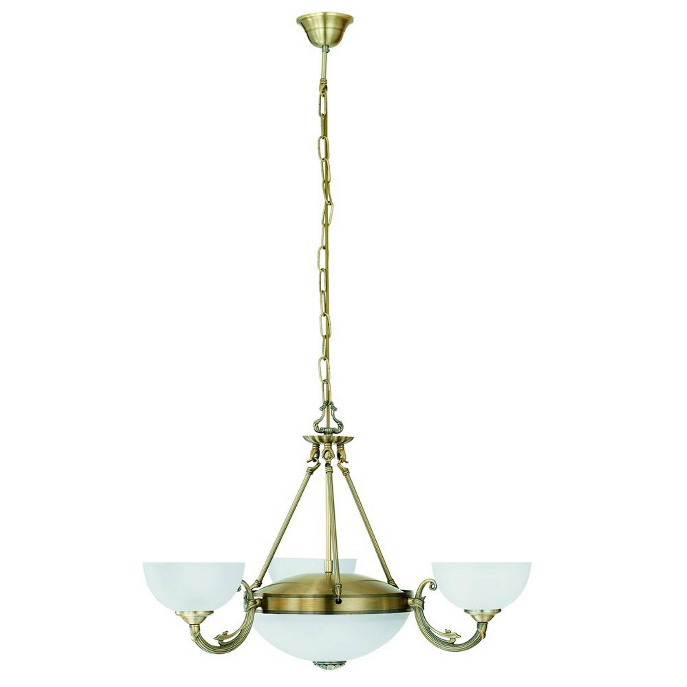 Dette pendelarmatur fra serien savoy er lavet af bronzestøbt metal og hvidt, satineret glas. Spottet har brug for tre e14-lamps og to e27-lamps.