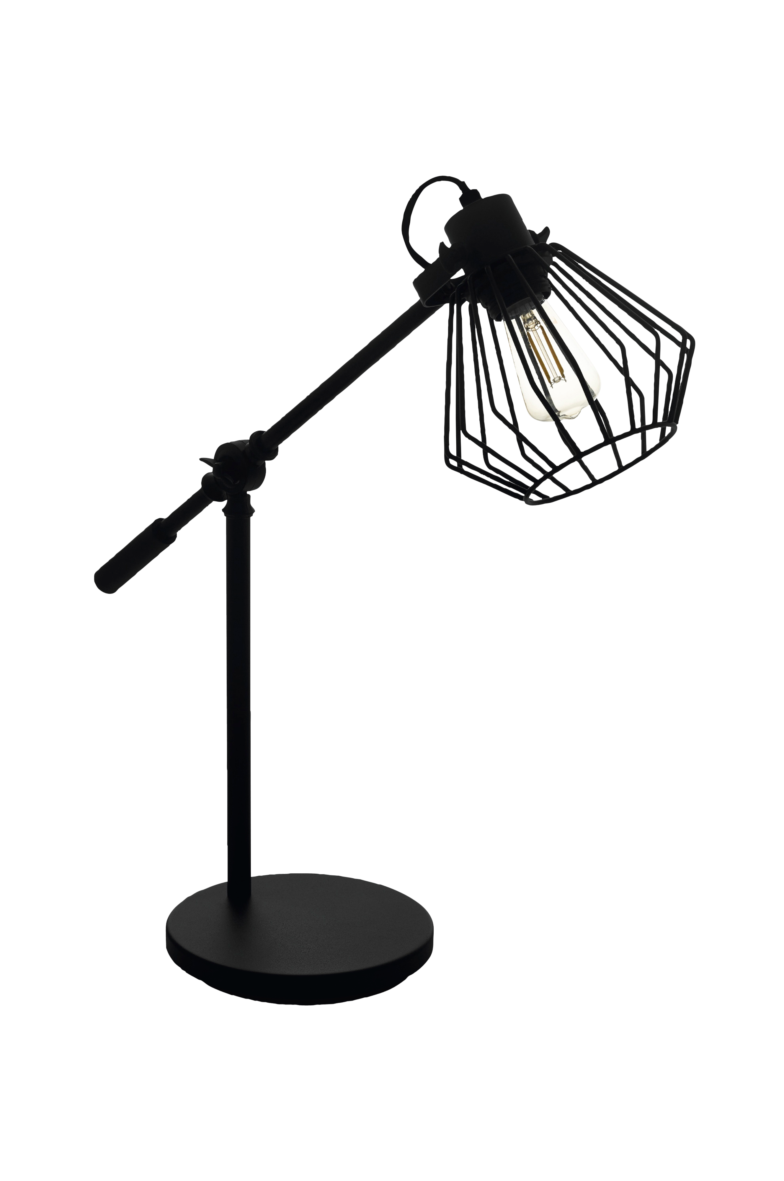 tabillano 1 bordlampen har en sort metalbase med en justerbar diamantformet trådlampeskærm. Trådskærmen skaber et fascinerende spil af lys og skygge, når lyset er tændt. Bordlampen har en justerbar arm, så du kan tilpasse lyset til dine behov. Produktet kan nemt tændes og slukkes ved hjælp af in-line-kontakten. Denne bordlampe er den perfekte afslutning på en moderne indretning og vil skabe den rette stemning i ethvert rum, uanset om den står på et natbord, i stuen eller på en skænk i gangen. Den afbildede glødepære er ikke inkluderet. Produktet har en e27-lampeholder og kræver en e27-pære.
