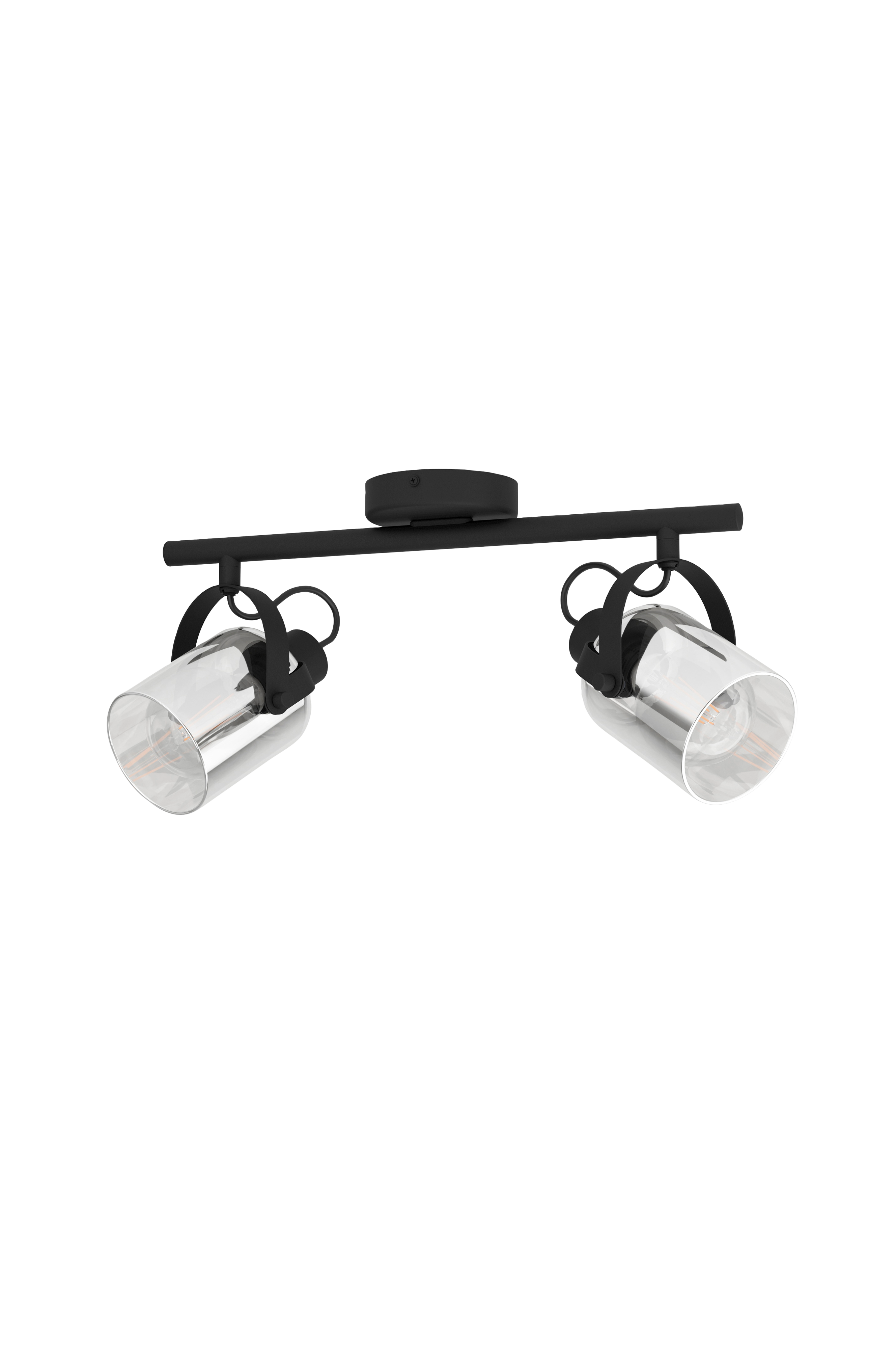 berregas loftslampen har et struktureret sort metalbeslag med to justerbare spotlights af sort-transparent fordampet glas. Med sine drejelige hoveder supplerer loftslampen smukt interiør i moderne stil og fungerer godt i ethvert rum, uanset om det er i køkkenet, stuen, soveværelset, gangen eller spisestuen. Produktet kræver 2 x e27-pærer, som ikke medfølger.