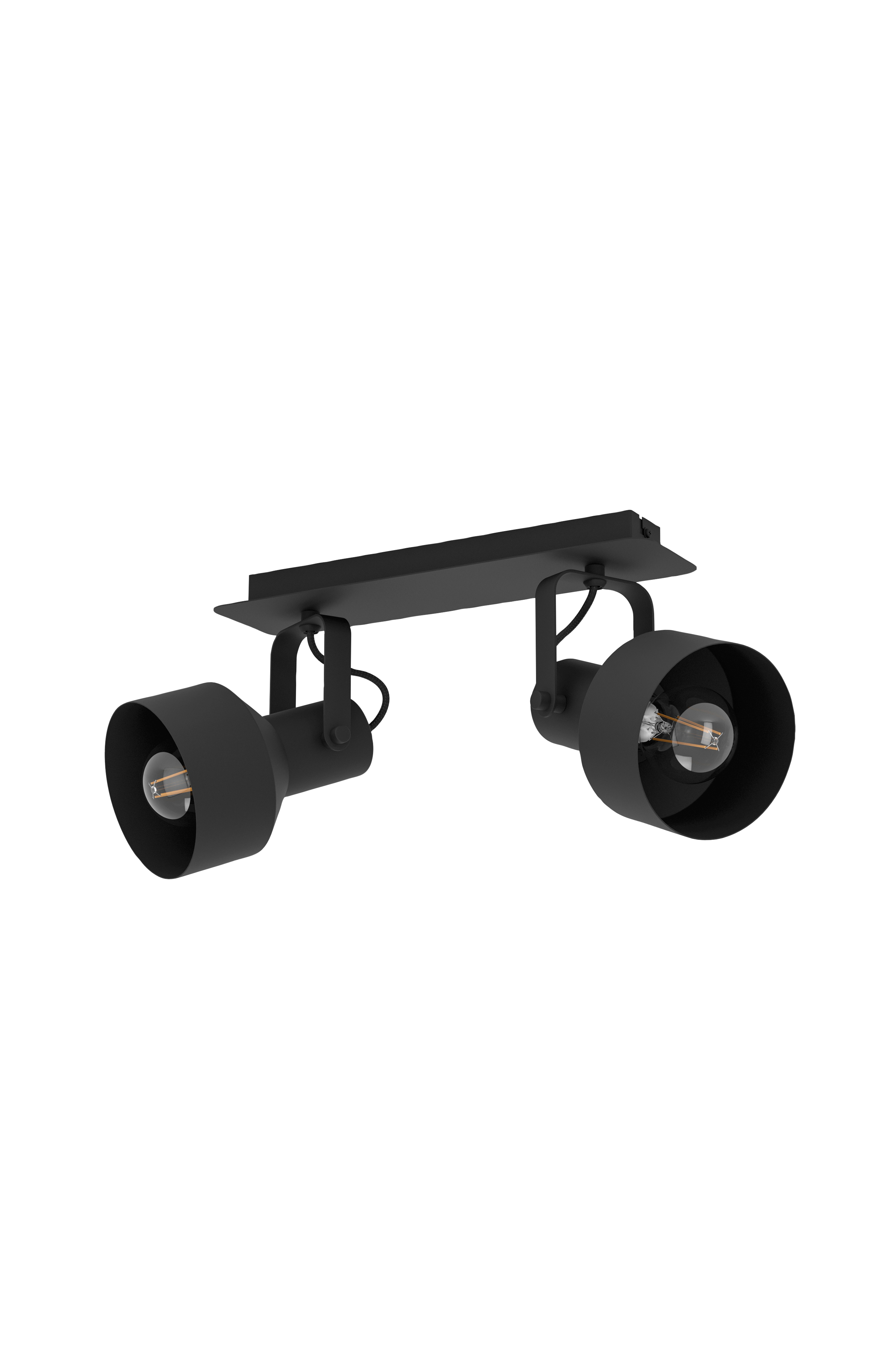 casibare loftslampen er lavet af sort metal og har to justerbare sorte spots. Med sit monokrome design passer loftslampen perfekt ind i moderne indretning og giver stilfuld arbejdsbelysning. De justerbare spotlights giver dig mulighed for at rette lyset mod individuelle områder i dit rum, uanset om det er stuen, soveværelset, gangen eller spisestuen. Produktet har e27-lampeholdere og kræver 2 x e27-pærer, som ikke medfølger.