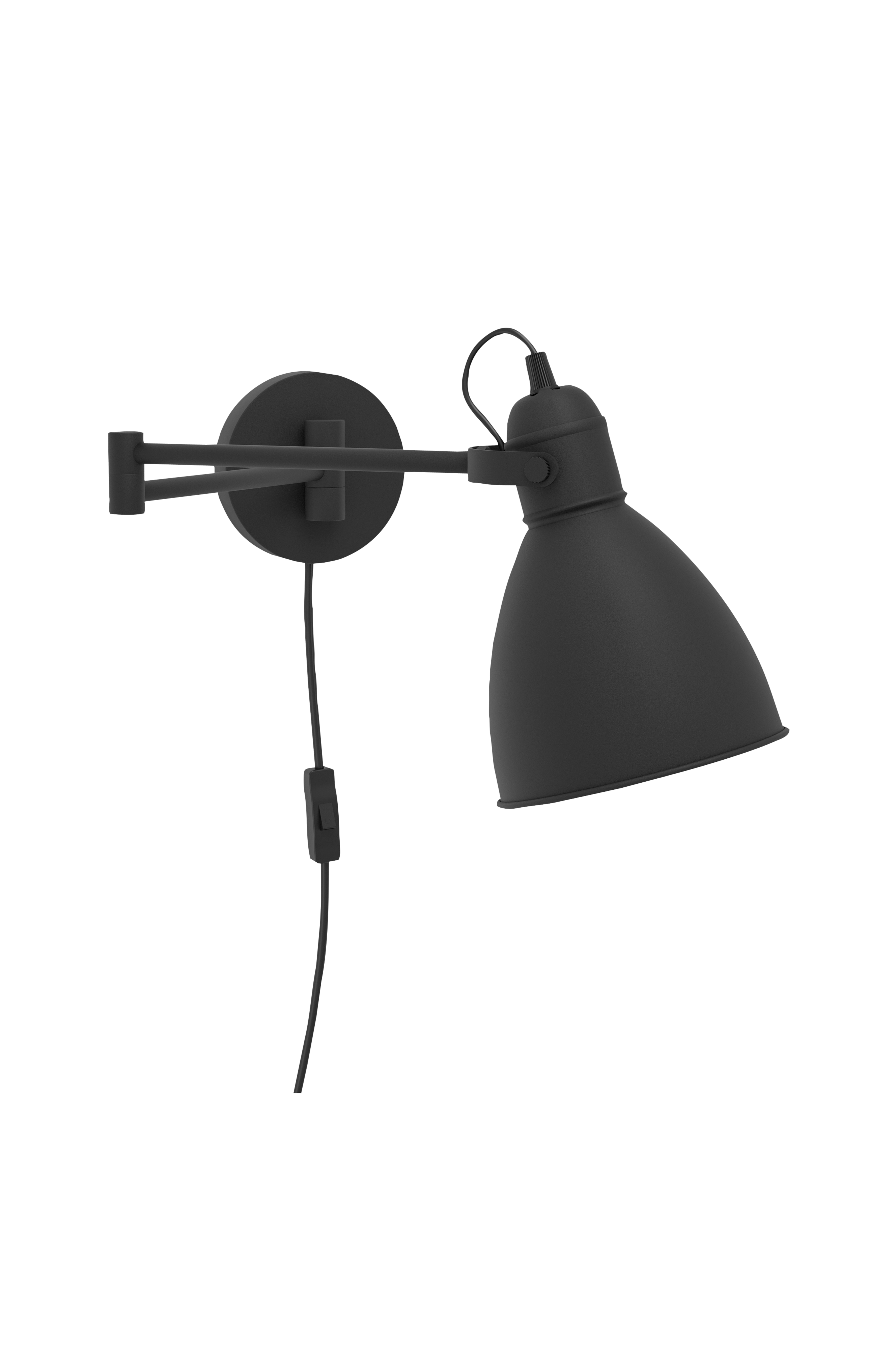 san peri væglampen har en sort metalfinish og har en justerbar arm og hoved. Lampeskærmen har en hvid inderside og giver et fremragende lys, mens den drejelige arm kan justere lyset, så det fremhæver enkelte områder i rummet. Væglampen kan nemt tændes og slukkes ved hjælp af den indbyggede kontakt. Det minimalistiske design passer perfekt til moderne, vintage og industriel indretning og giver ideel belysning til dit hjem. Den afbildede glødepære er ikke inkluderet. Produktet har en e27-lampeholder og kræver en a60 e27-pære.