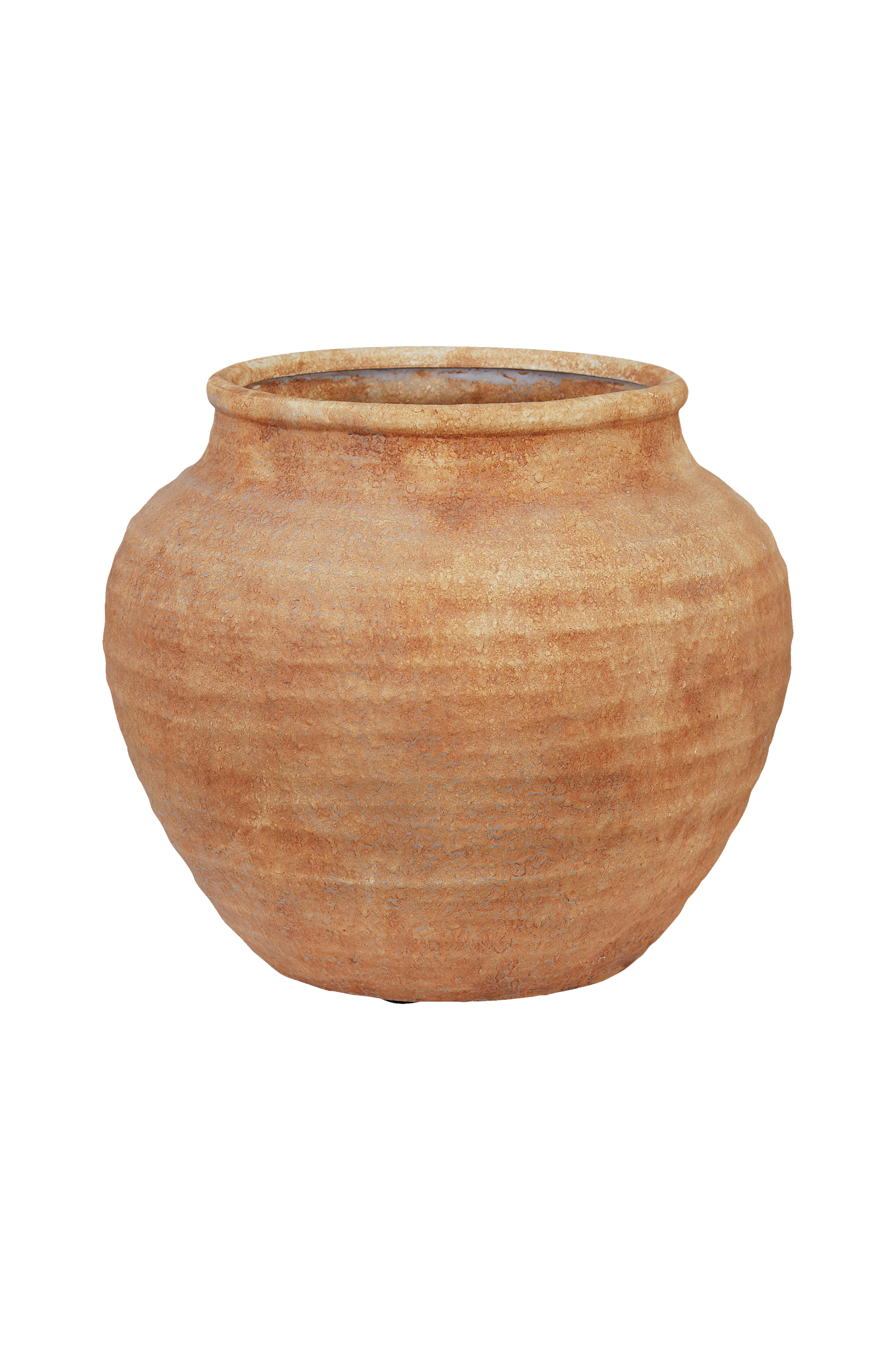 Krukke i terrakotta, højde 23,5 cm. Aftørres med en fugtig klud. Hvert produkt er håndlavet og unikt. Fajance er et naturligt porøst materiale og kan lække, brug sammen med en bakke eller anbring på vandtætte overflader.