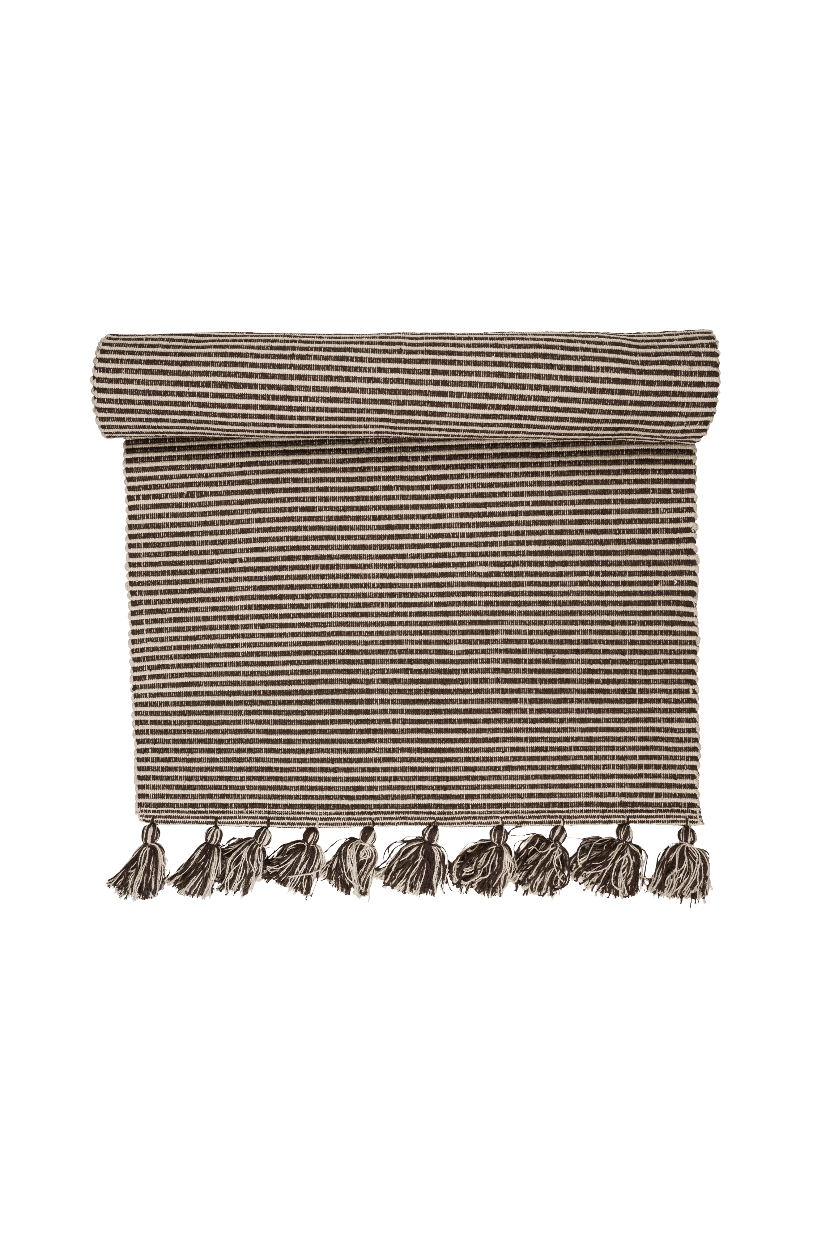 Gulvtæppe i 100% bomuld med kvaster på de korte sider. Kemisk rens.