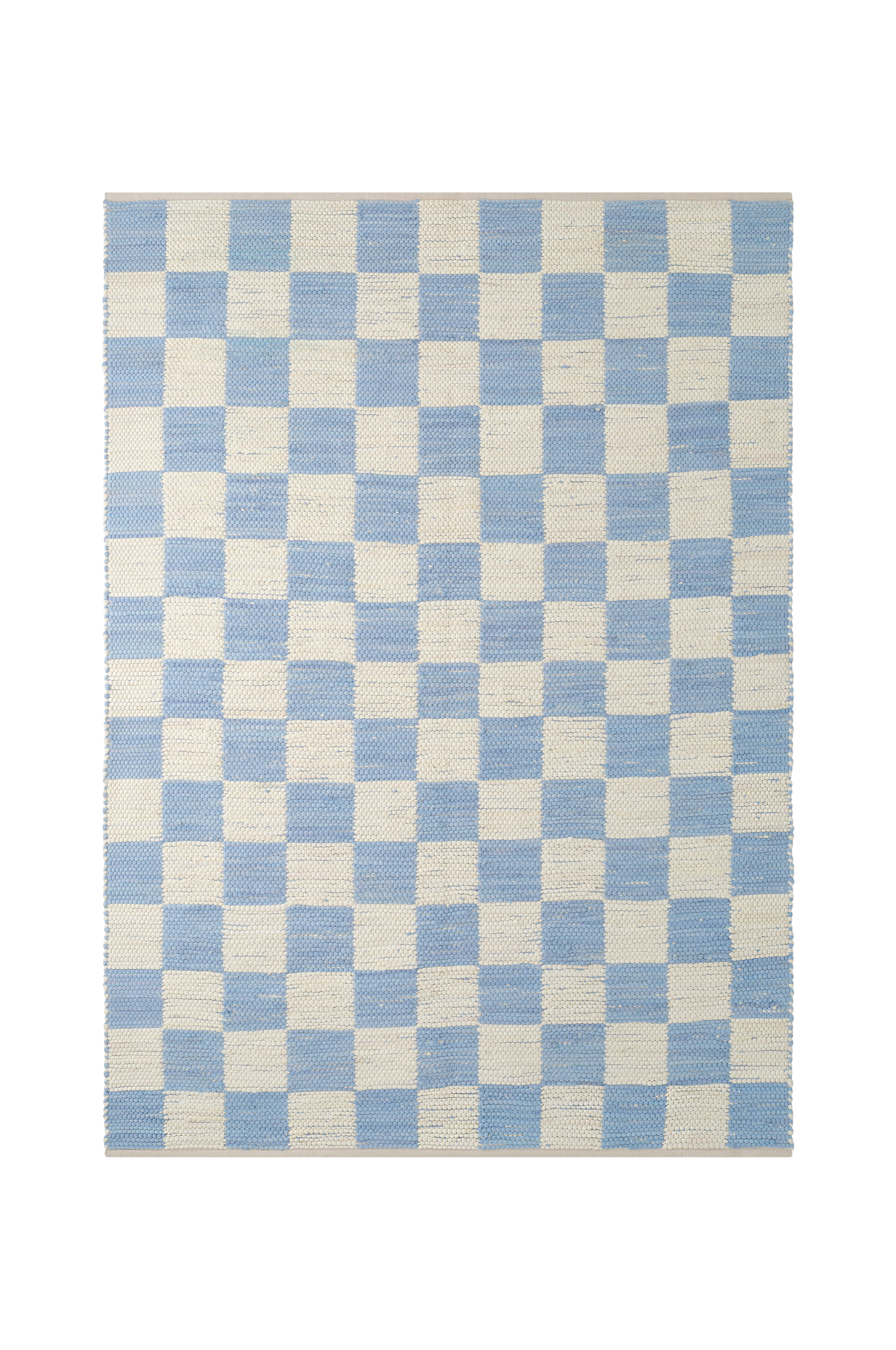 • Glatvævet, ternet gulvtæppe i bomuld.