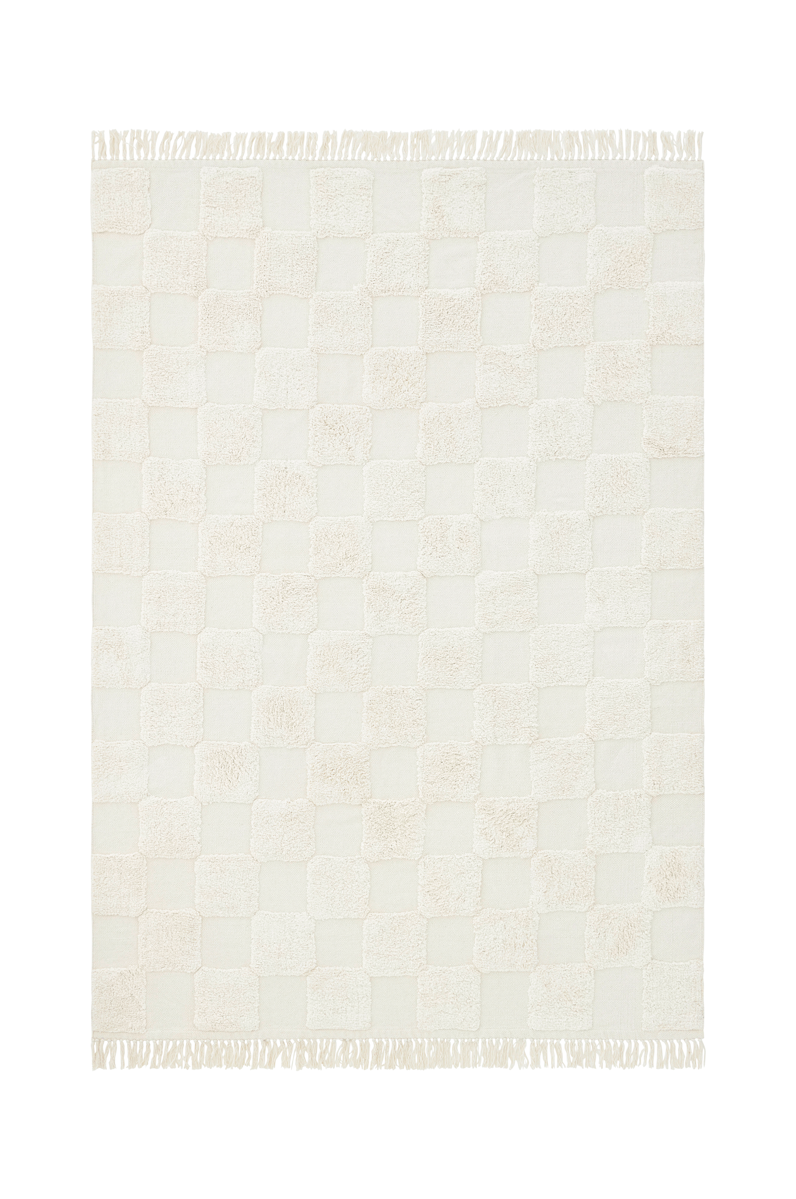 • Håndvævet bomuldsgulvtæppe med tuftet ternet mønster