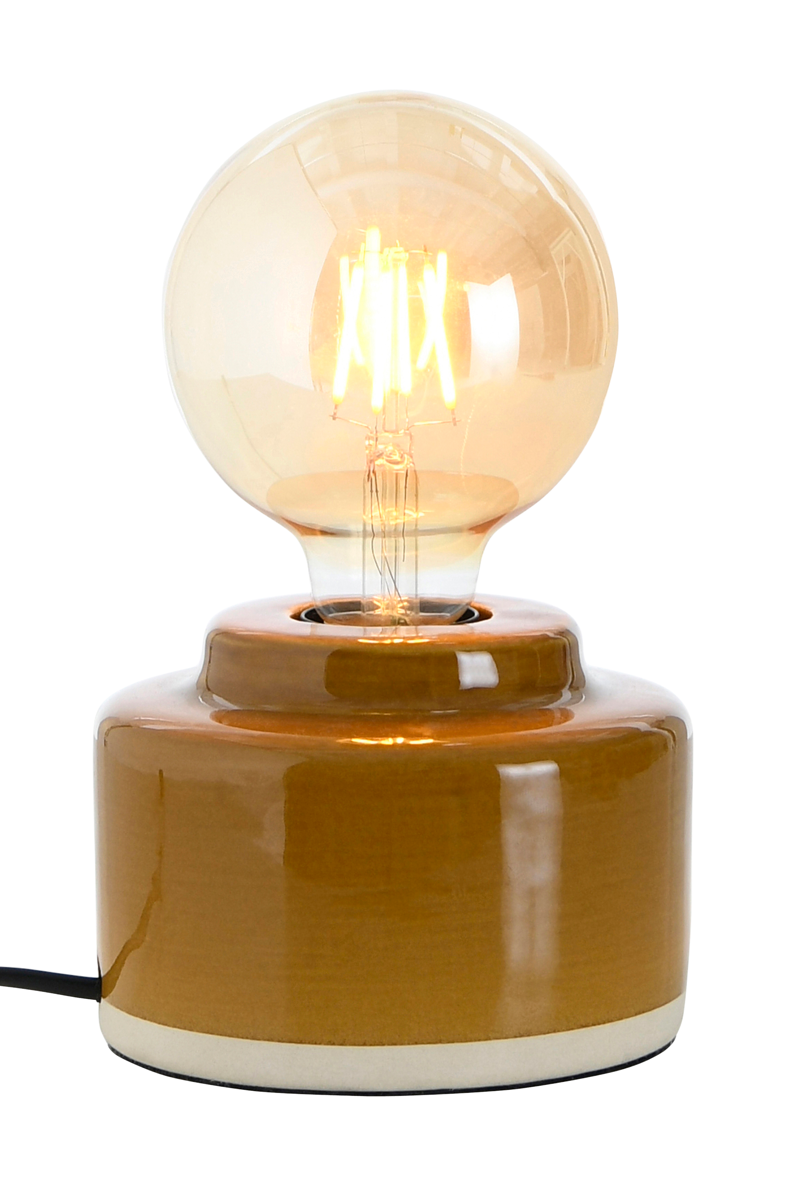 Bordlampe af glaseret keramik med farvenuancer som giver hver lampe et unikt udseeende. Sort ledning med strømafbryder.