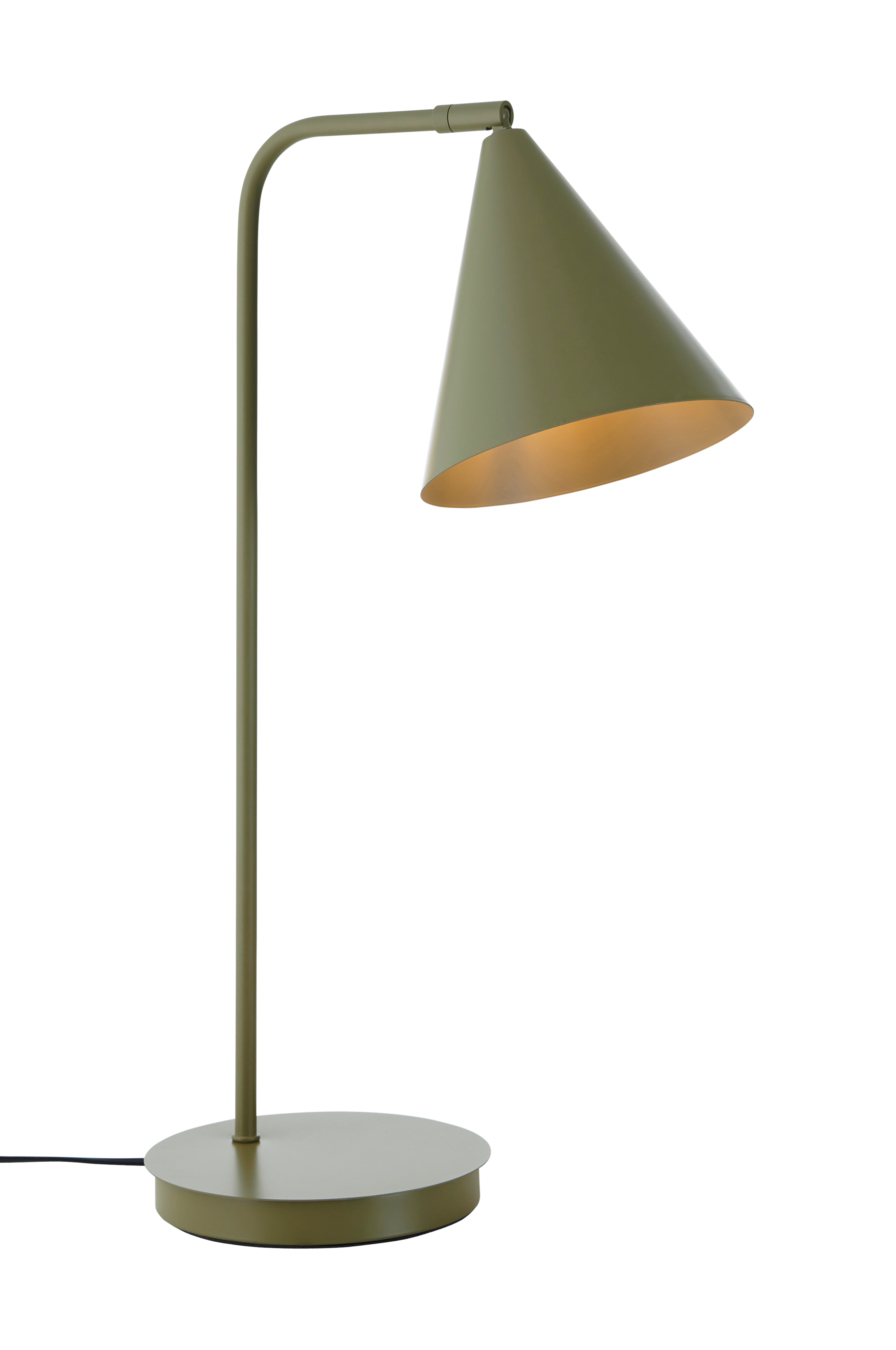 Bordlampe af metal med trendy, kegleformet skærm. Skærmen er justerbar i højden og til siden. Ledning med afbryder.