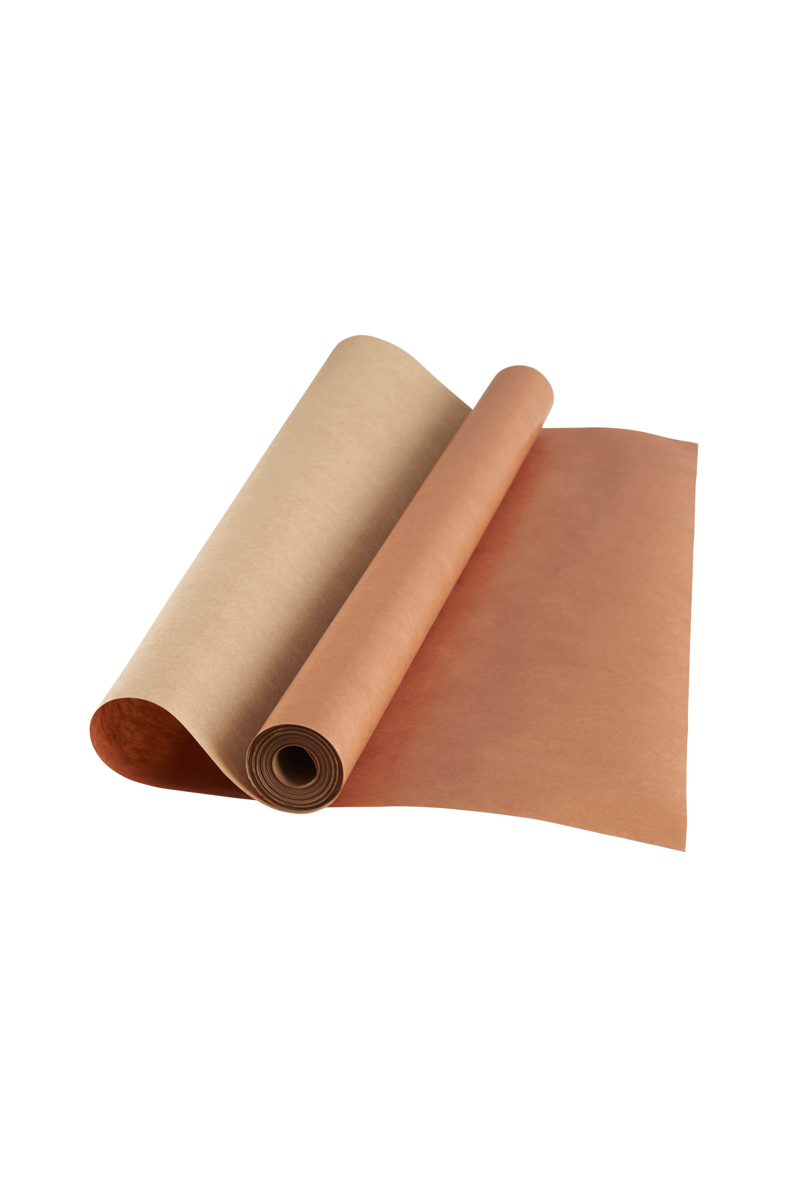 Printet, ensfarvet brunt papir i kraftig kvalitet. 80 g. Bredde 57 cm. Længde pr. rulle 10 meter.