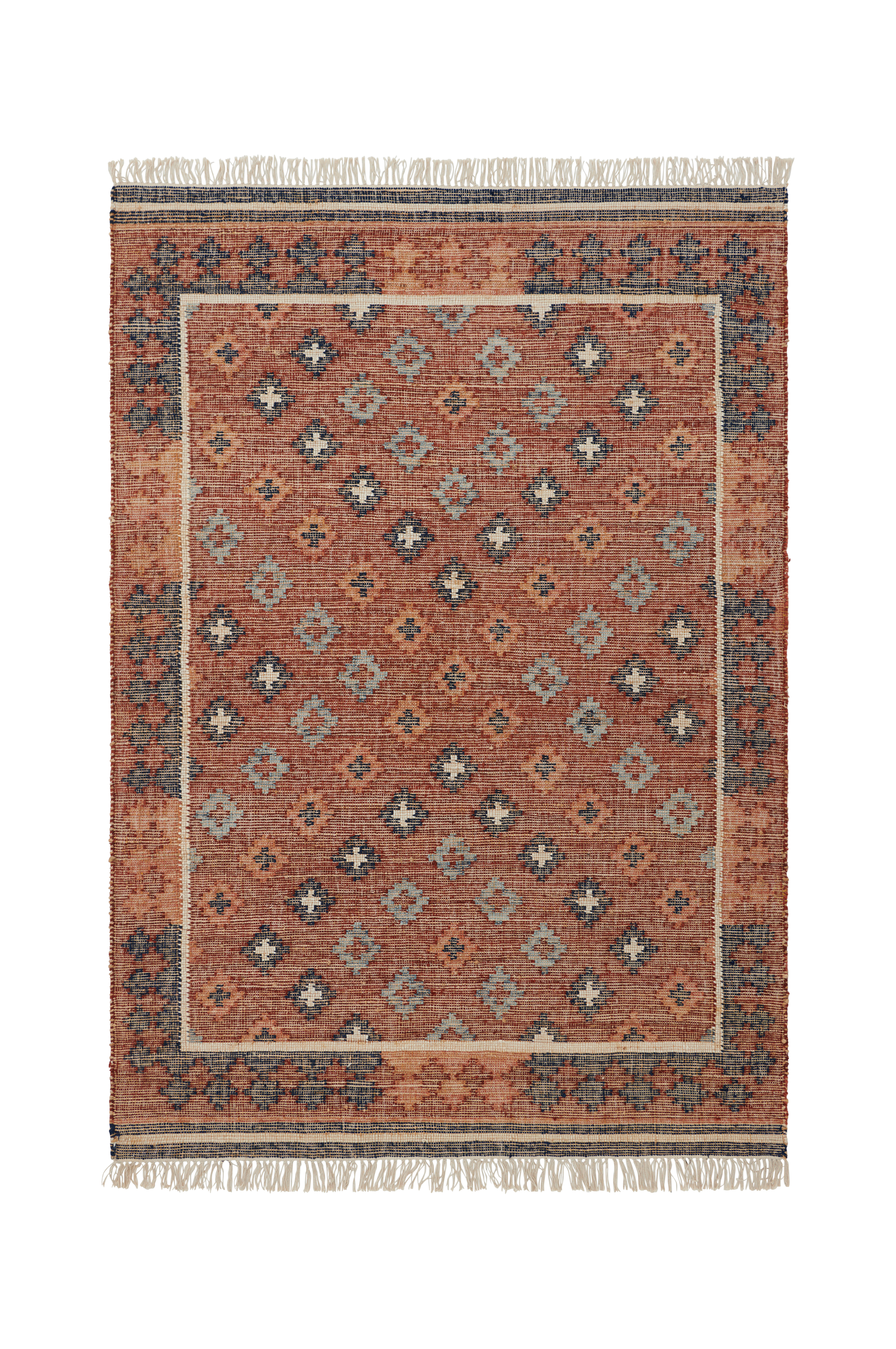 • Håndvævet, mønstret kelimtæppe i blød jute