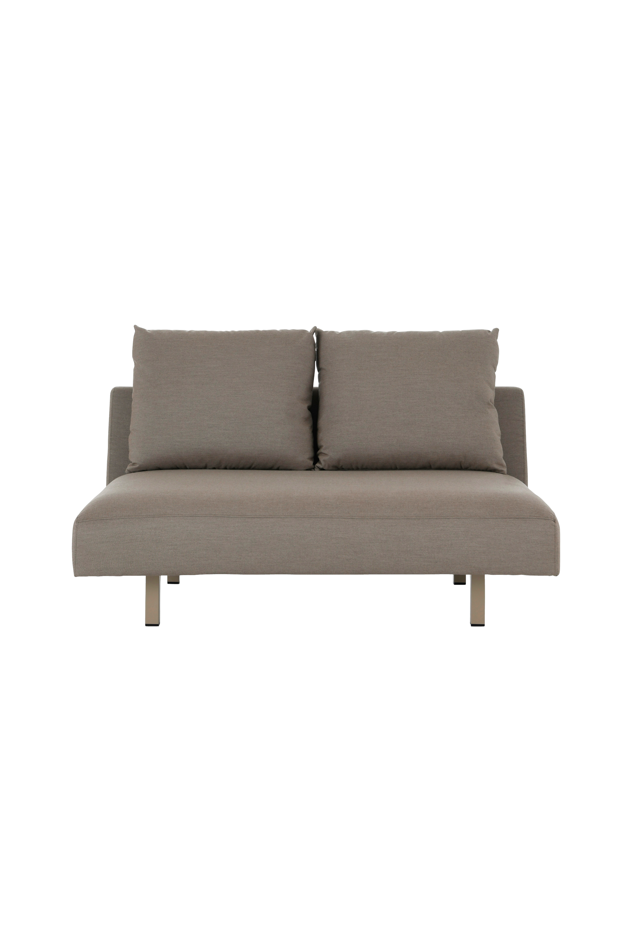 2-pers. sofa i loungemodel i en meget let konstruktion. En sofa der kan stå ude i al slags vejr, året rundt. Meget let ramme og ben af rustfrit aluminium. Betrækket er smuds- og vandafvisende i det unikke, gennemfarvede stof Sunbrella. Stofbetrukket, blødt Quick Dry Foam-skum, der er hurtigtørrende og slipper al vand igennem, så der ikke efterlades noget i møblet. Materialet gør det muligt at bruge møblet ca. 45 minutter efter kraftig regn. Du slipper også for at løbe ud og ind med hynder. Det smudsafvisende stof er let at tørre af og kan højtryksspules. Stoffet er også meget slidstærkt og har høj lysægthed (tåler sol). To puder medfølger.