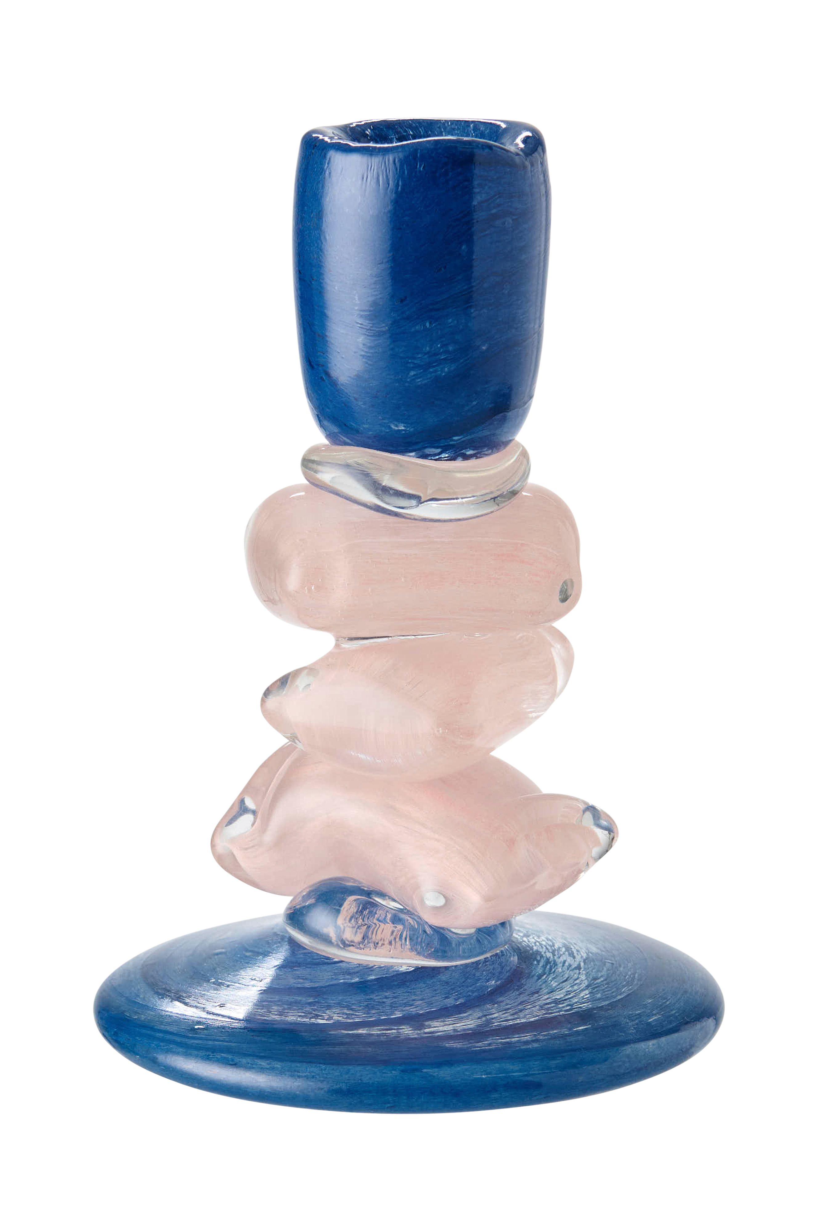 • Håndlavet lysestage i glas med anderledes, matchende farver