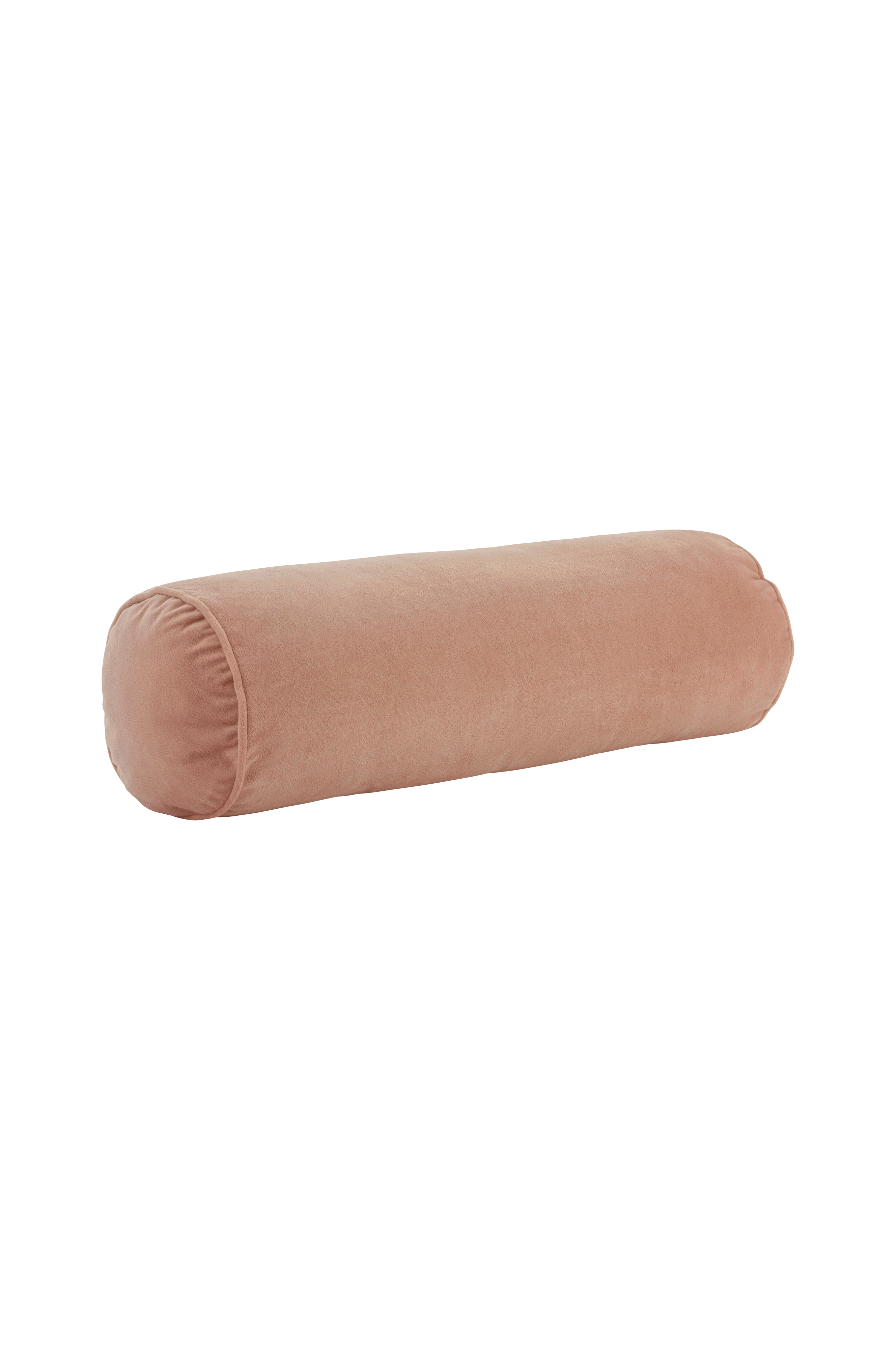Cylinderformet pude i velour med monteringspude i polyester. Paspoleret kant i enderne. Af genindvundet polyester. Lynlås på undersiden. Bredde 55 cm, diameter 18 cm.
