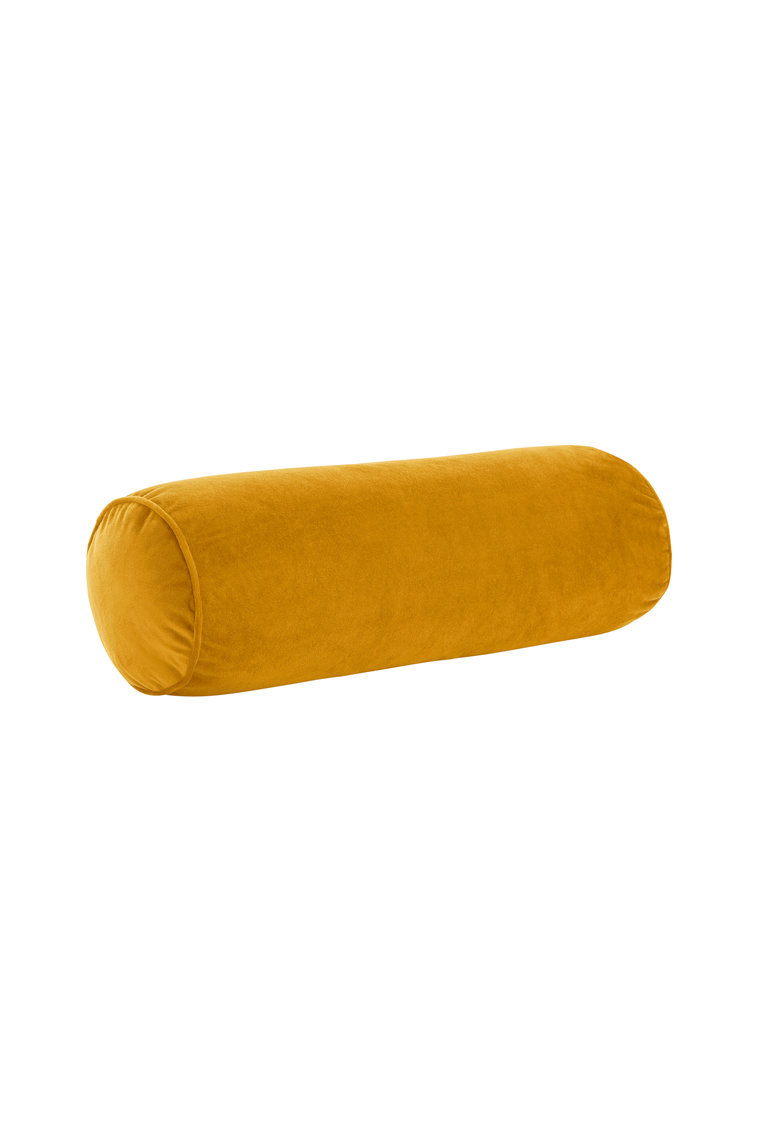 Cylinderformet pude i velour med monteringspude i polyester. Paspoleret kant i enderne. Af genindvundet polyester. Lynlås på undersiden. Bredde 55 cm, diameter 18 cm.