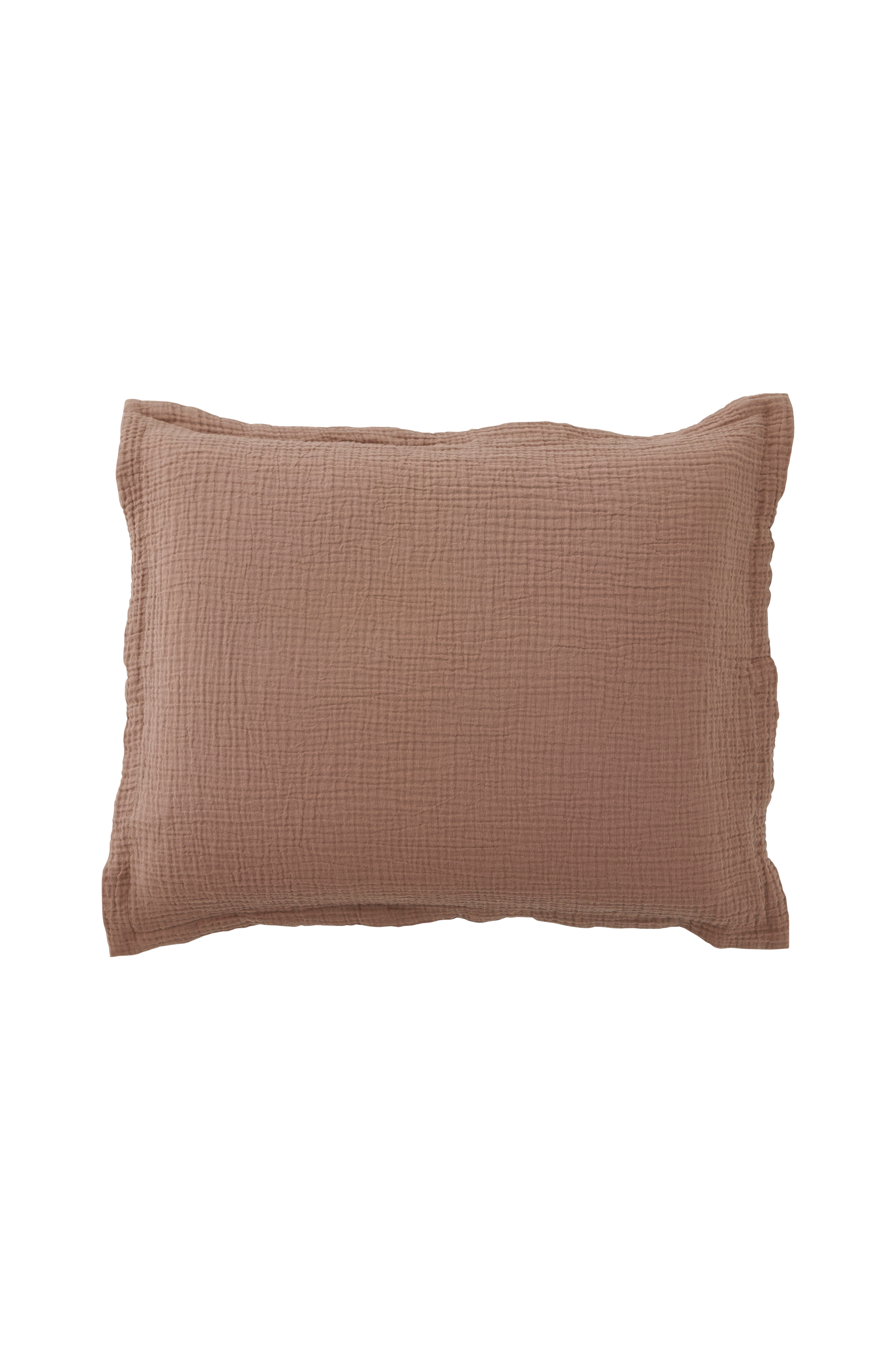 Pudebetræk af vasket, økologisk bomuldsmuslin i 2 lag. 2,5 cm vinge rundt om. Trådtal: 230 TC.