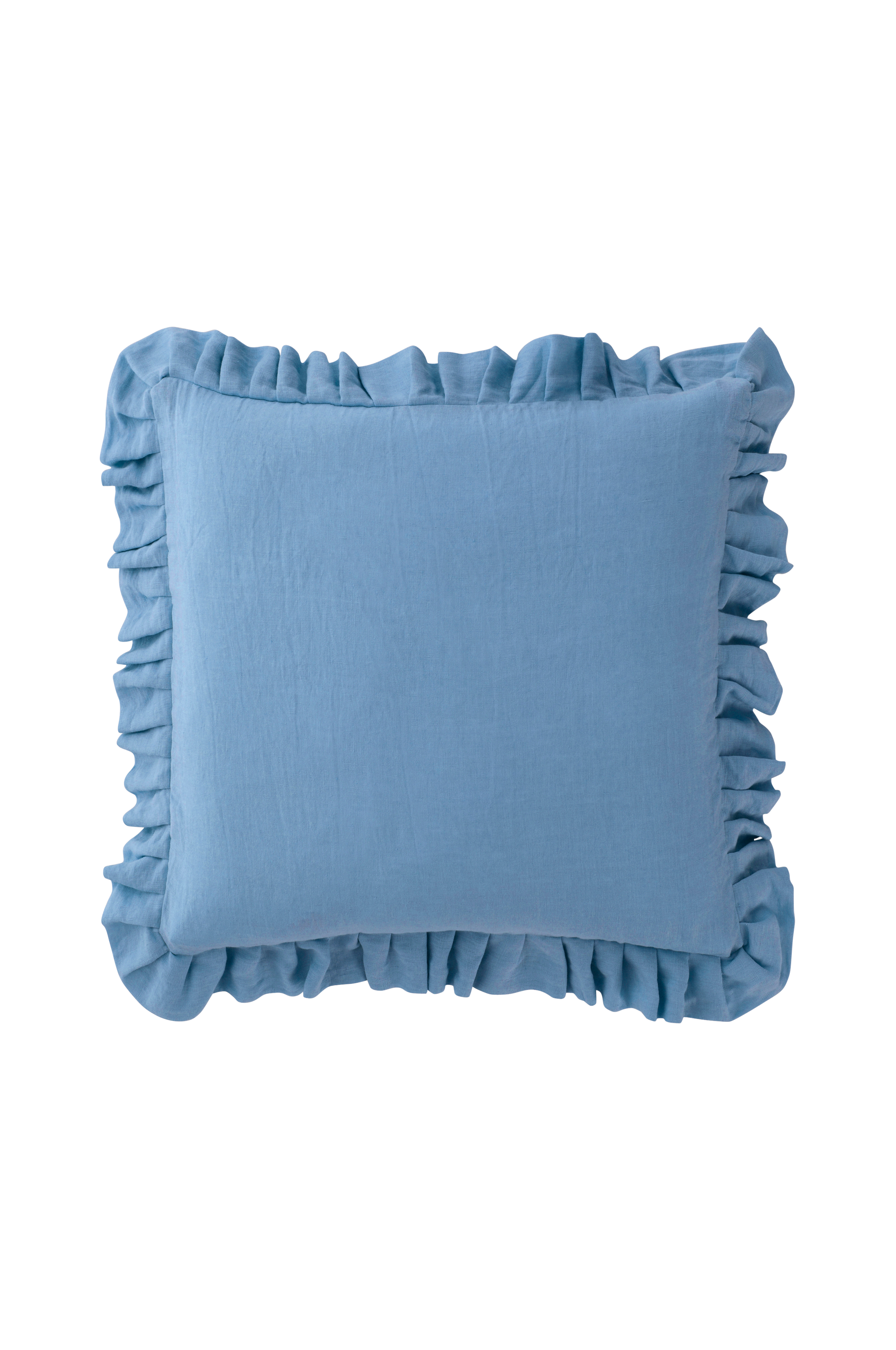 Pudebetræk i blød, vasket hørkvalitet af fransk hør. Flæse rundt om og lynlås bagpå. Str. 50x50 cm + 4,5 cm flæse.