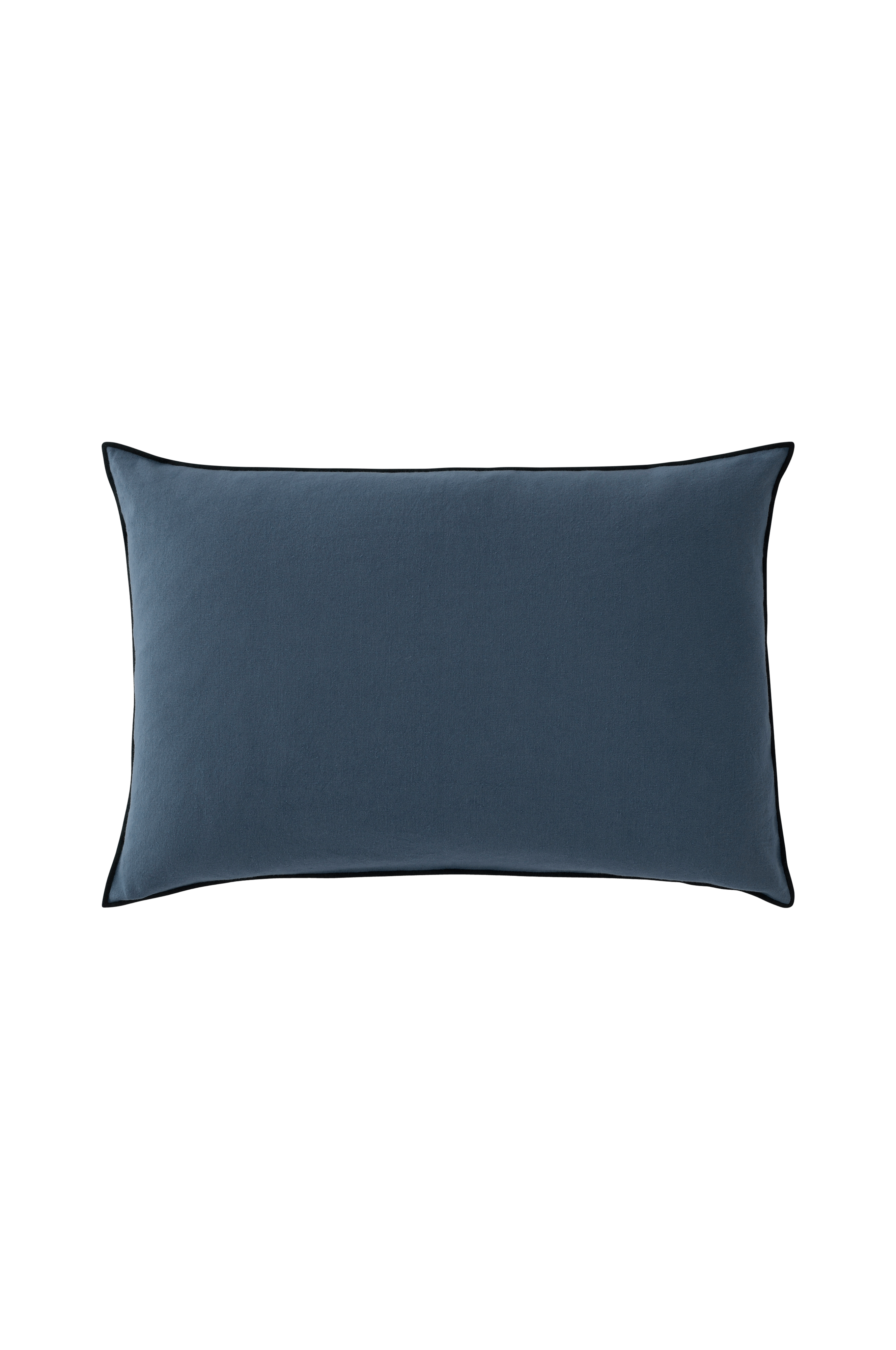 Pudebetræk i blødvasket kvalitet med overlocksøm i kontrastfarve rundt om. Lynlås på bagsiden. Str. 60x40 cm.