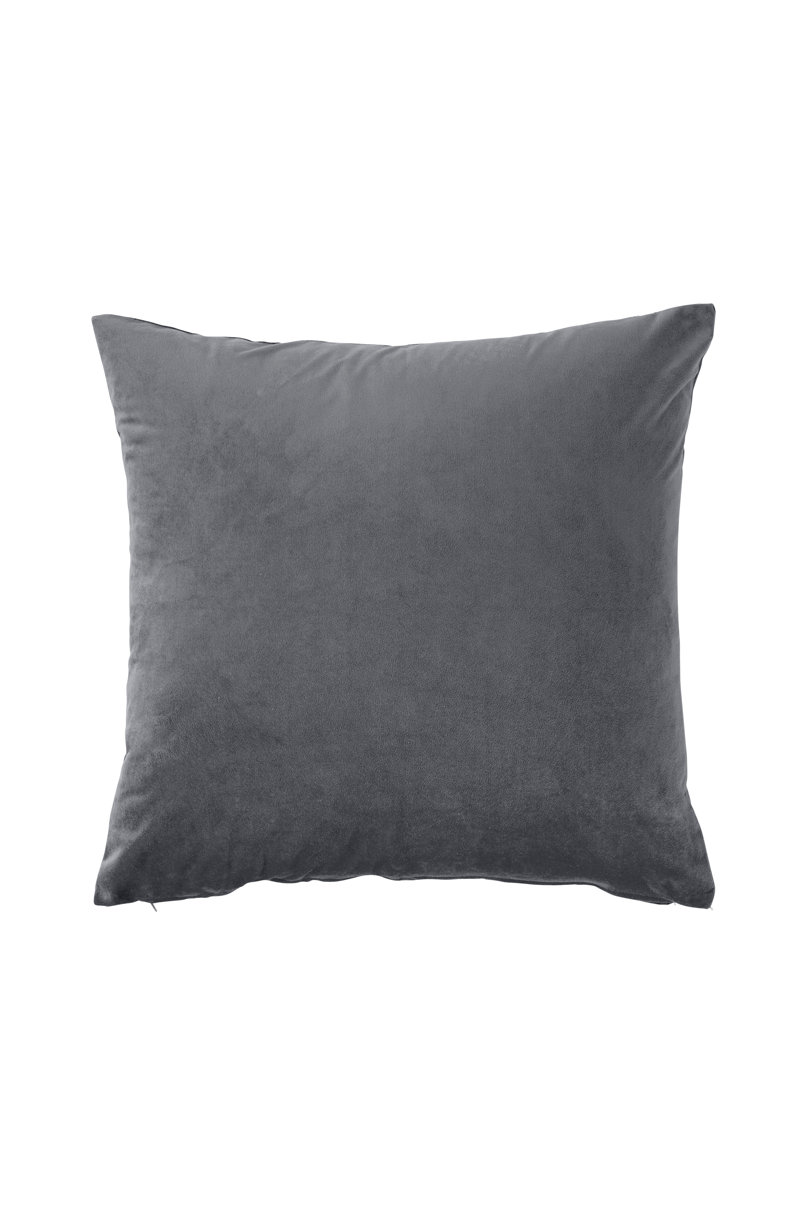 Pudebetræk af velour med fin glans. Af genindvundet polyester. Lynlås i bunden.