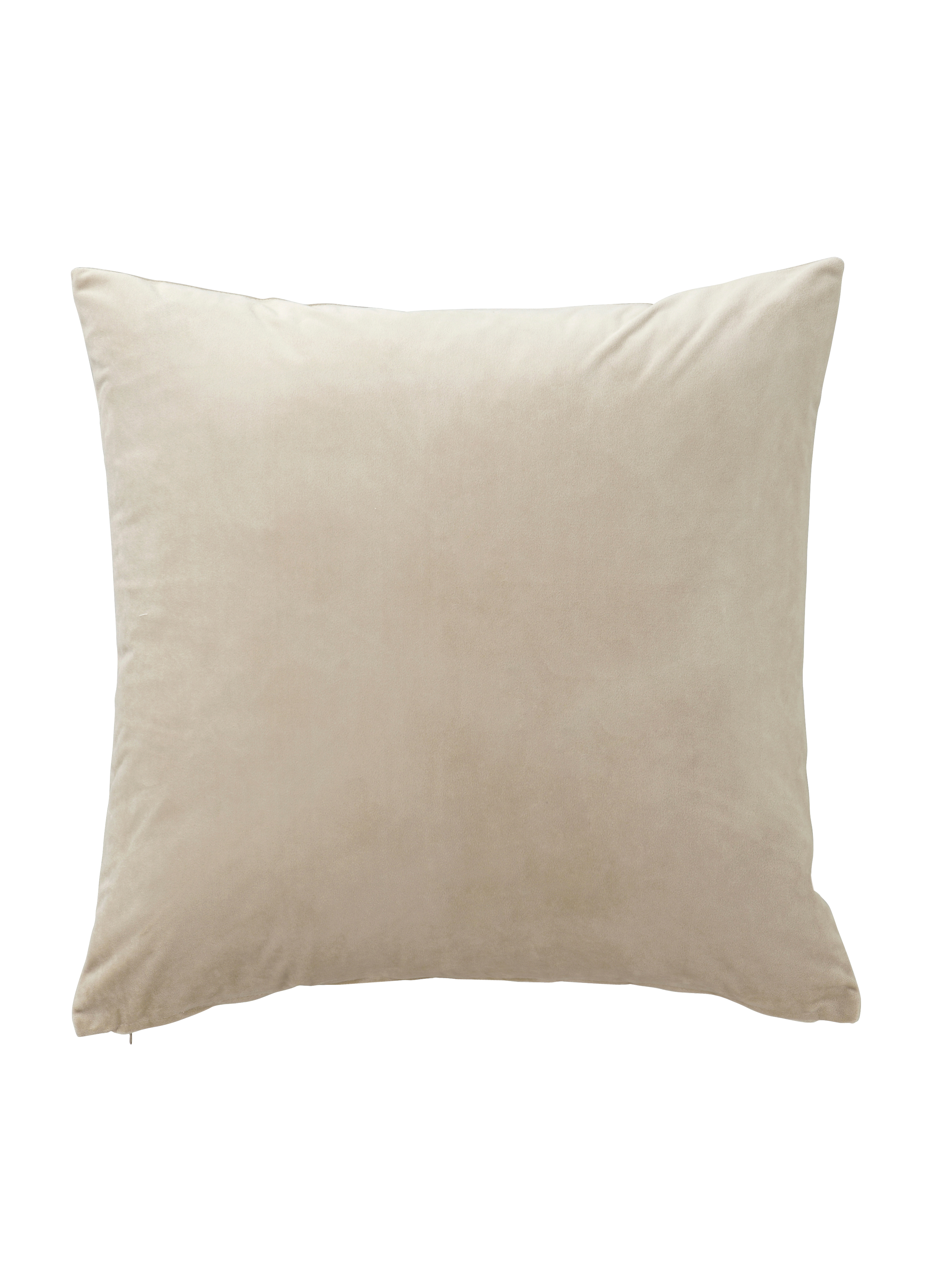 Pudebetræk af velour med fin glans. Af genindvundet polyester. Lynlås i bunden.
