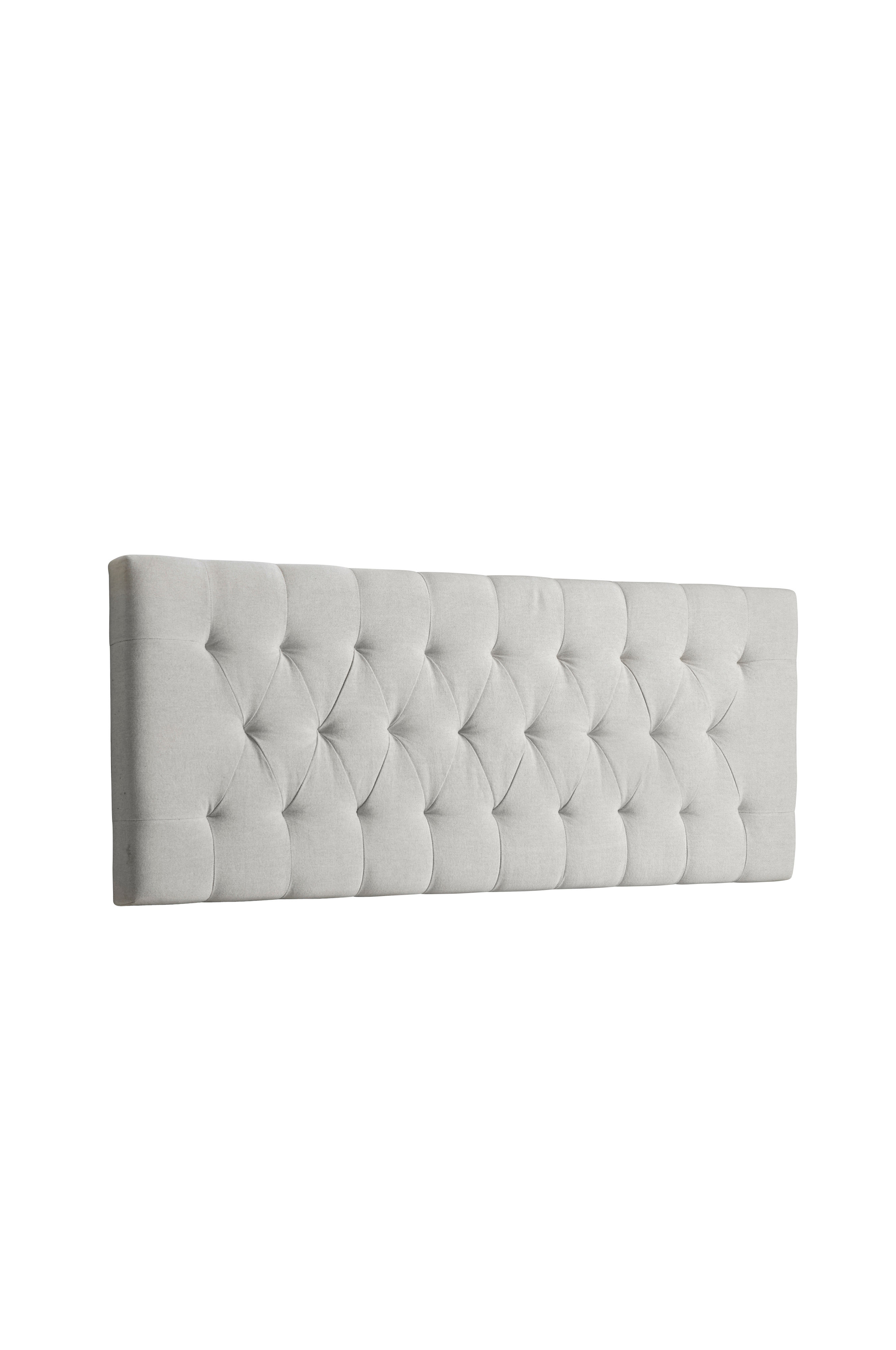 Polstret sengegavl i bomuldskanvas. Hænges direkte på væggen. Ramme af MDF med polstring af polyether. Str. 164x61 cm. Dybde/tykkelse 8 cm.