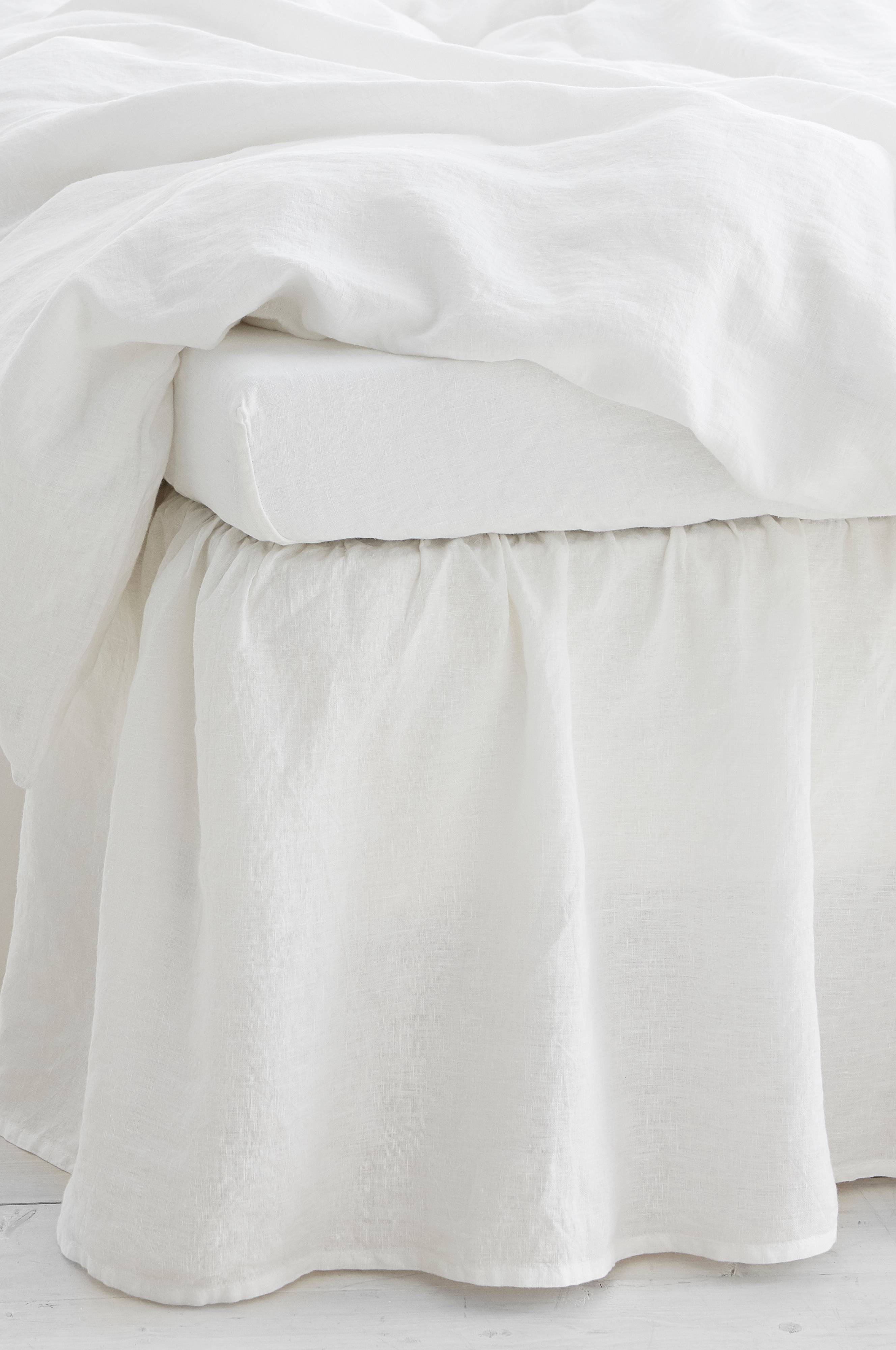 Sengekappe i vasket hørkvalitet af fransk hør med flade i bomuld. Løs, rynket pasform. Kappe på tre sider. Kappens længde 45 cm.