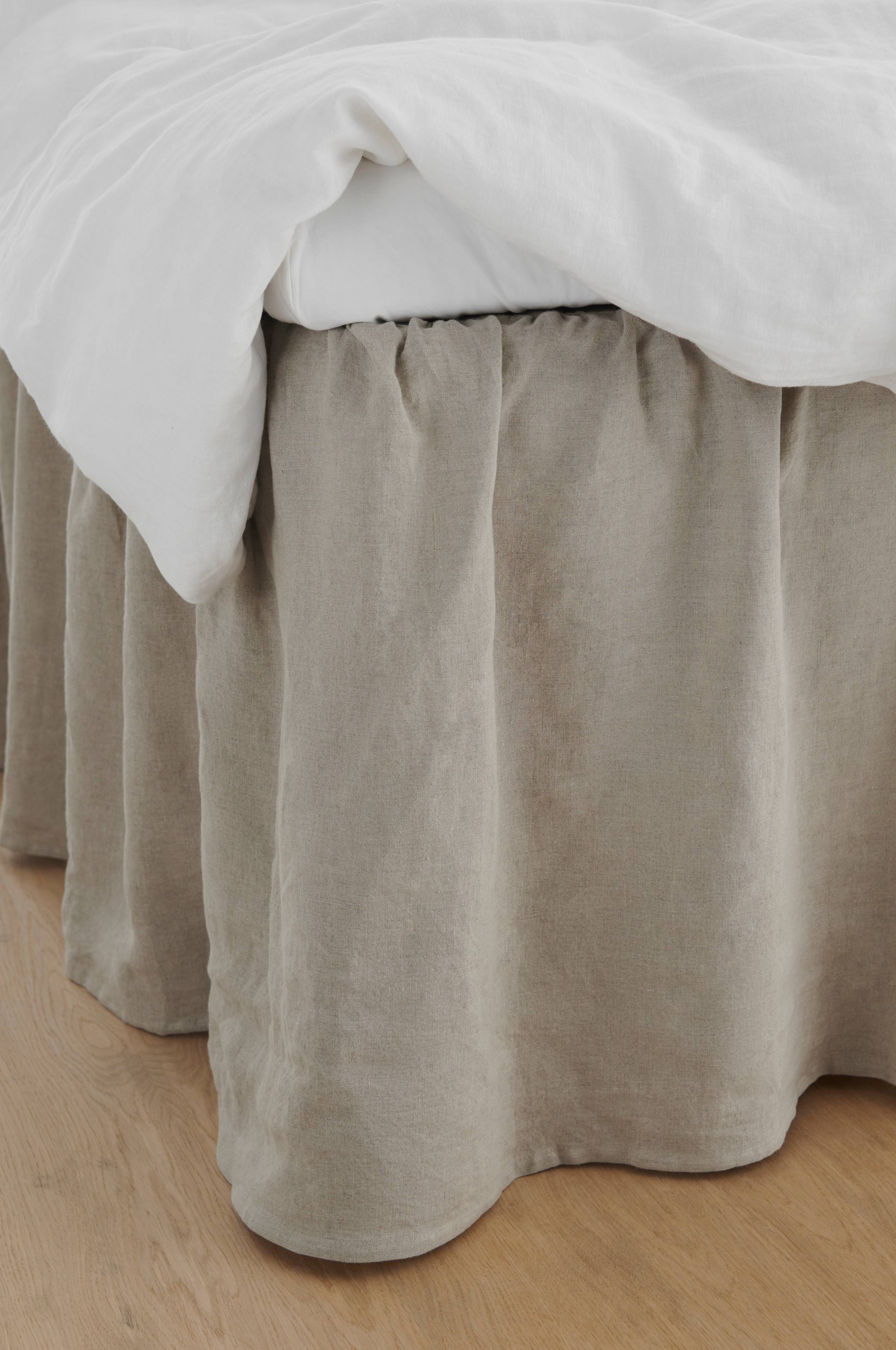 Sengekappe i vasket hørkvalitet af fransk hør med flade i bomuld. Løs, rynket pasform. Kappe på tre sider. Kappens længde 60 cm.