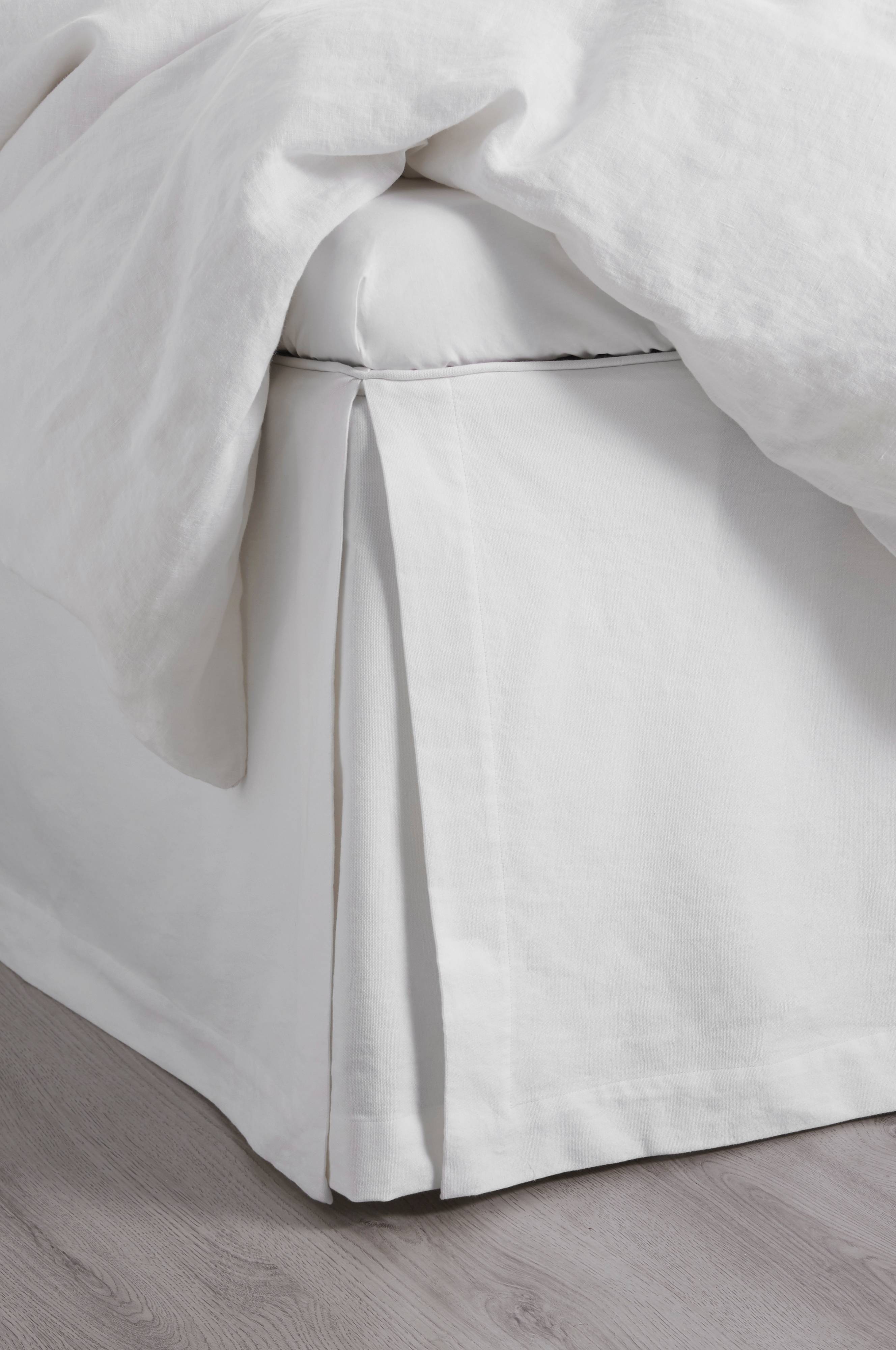 Meget tilfreds med kvaliteten af stoffet, designet og konstruktionen. Kan især godt lide piping rundt om kanten af sengen. Det hvide stof er ikke gennemsigtigt mod en beige ma…