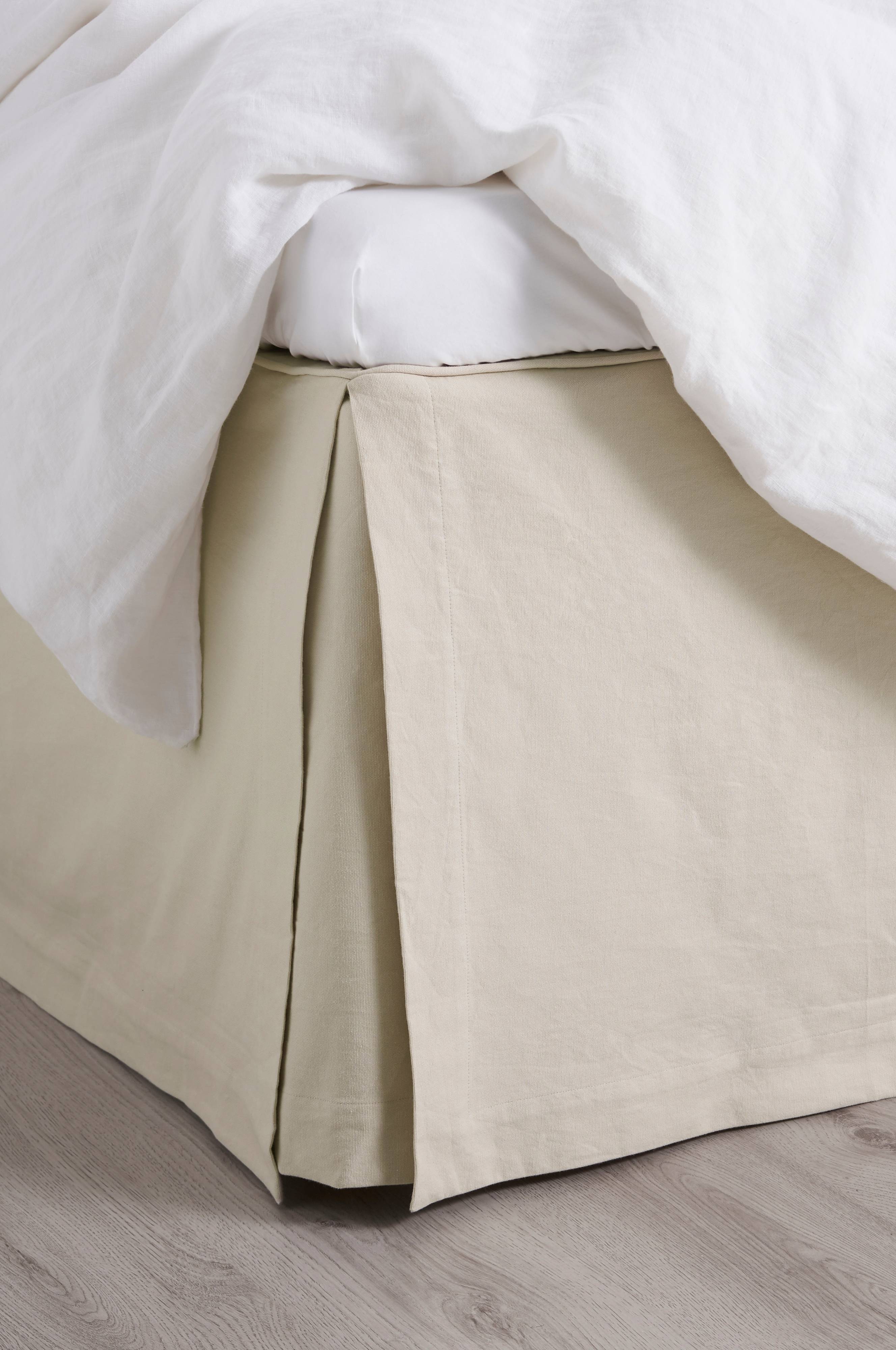 Meget tilfreds med kvaliteten af stoffet, designet og konstruktionen. Kan især godt lide piping rundt om kanten af sengen. Det hvide stof er ikke gennemsigtigt mod en beige ma…