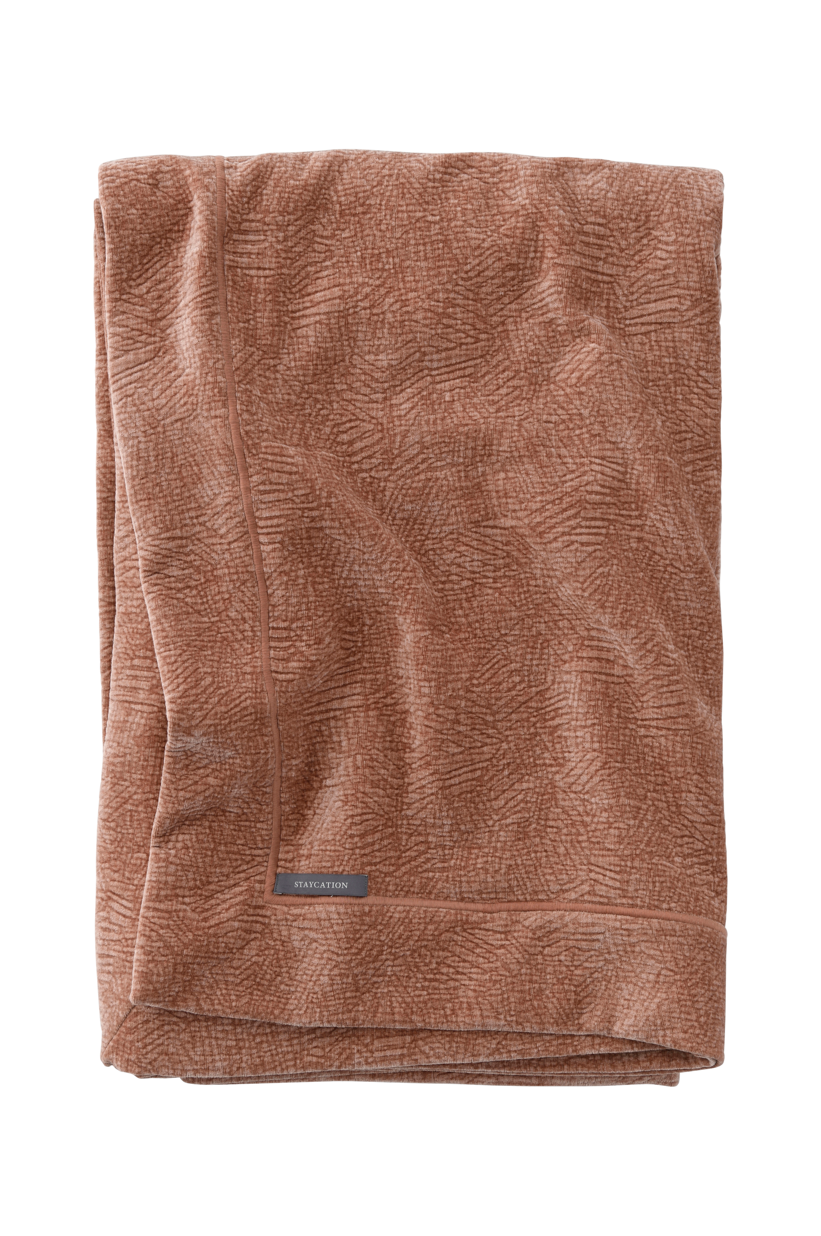 Sengetæppe i krøllet velour med vasket finish og fint fald. Dekorativ, syet kant rundt om.