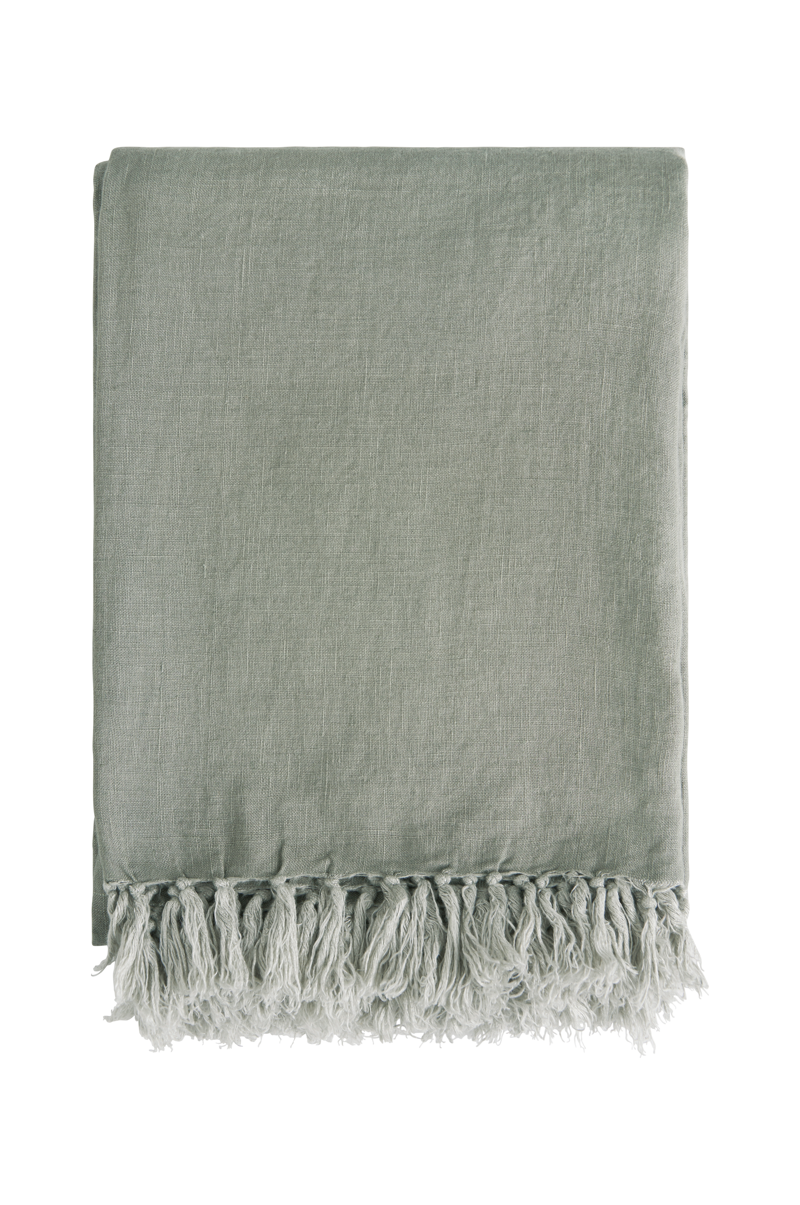 Sengetæppe af vasket, fransk hør i kraftig kvalitet med frynser på to sider. Kan også anvendes som plaid.