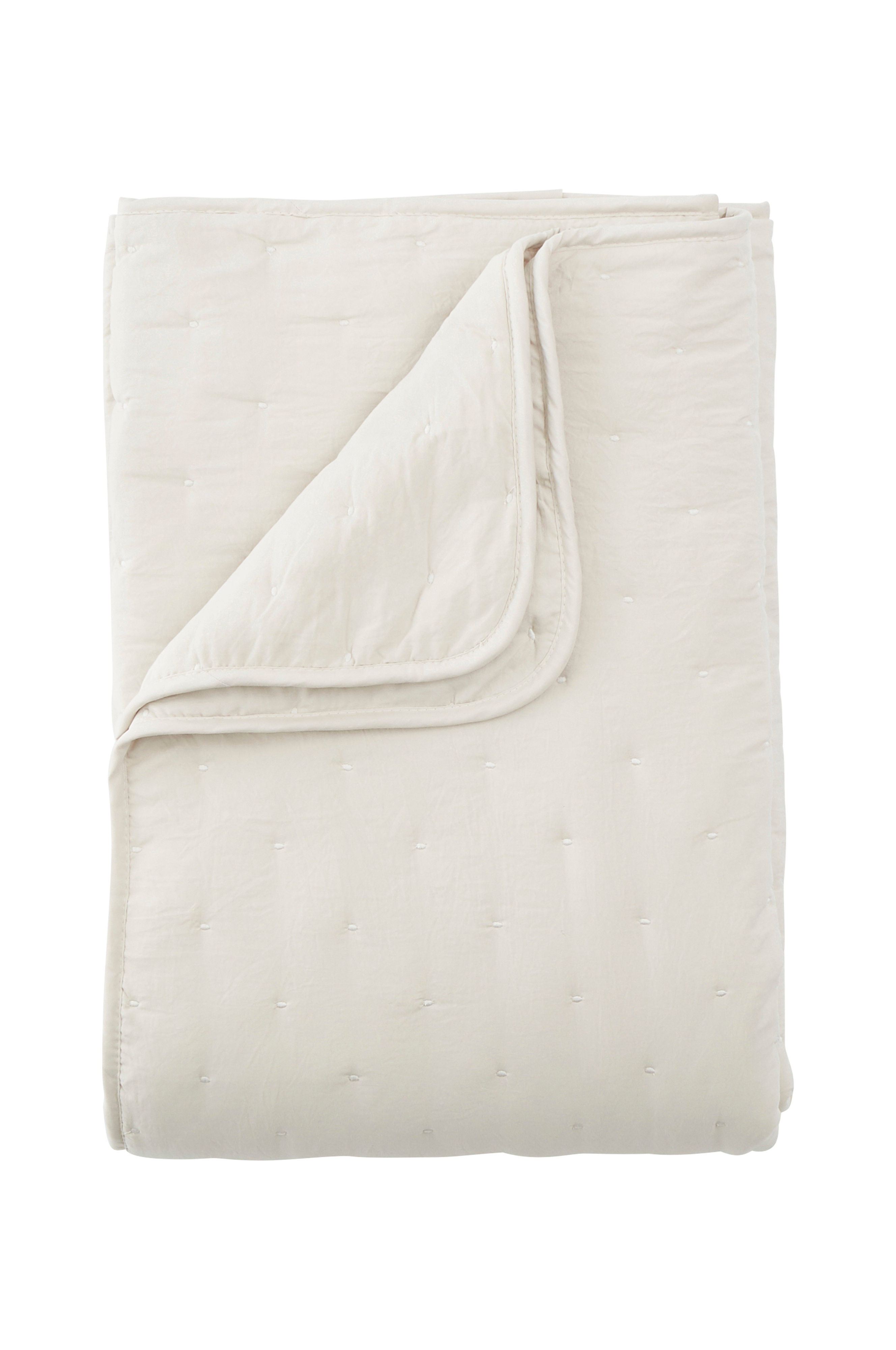 Quiltet sengetæppe i vasket kvalitet med blød, mat overflade og broderede prikker på begge sider.