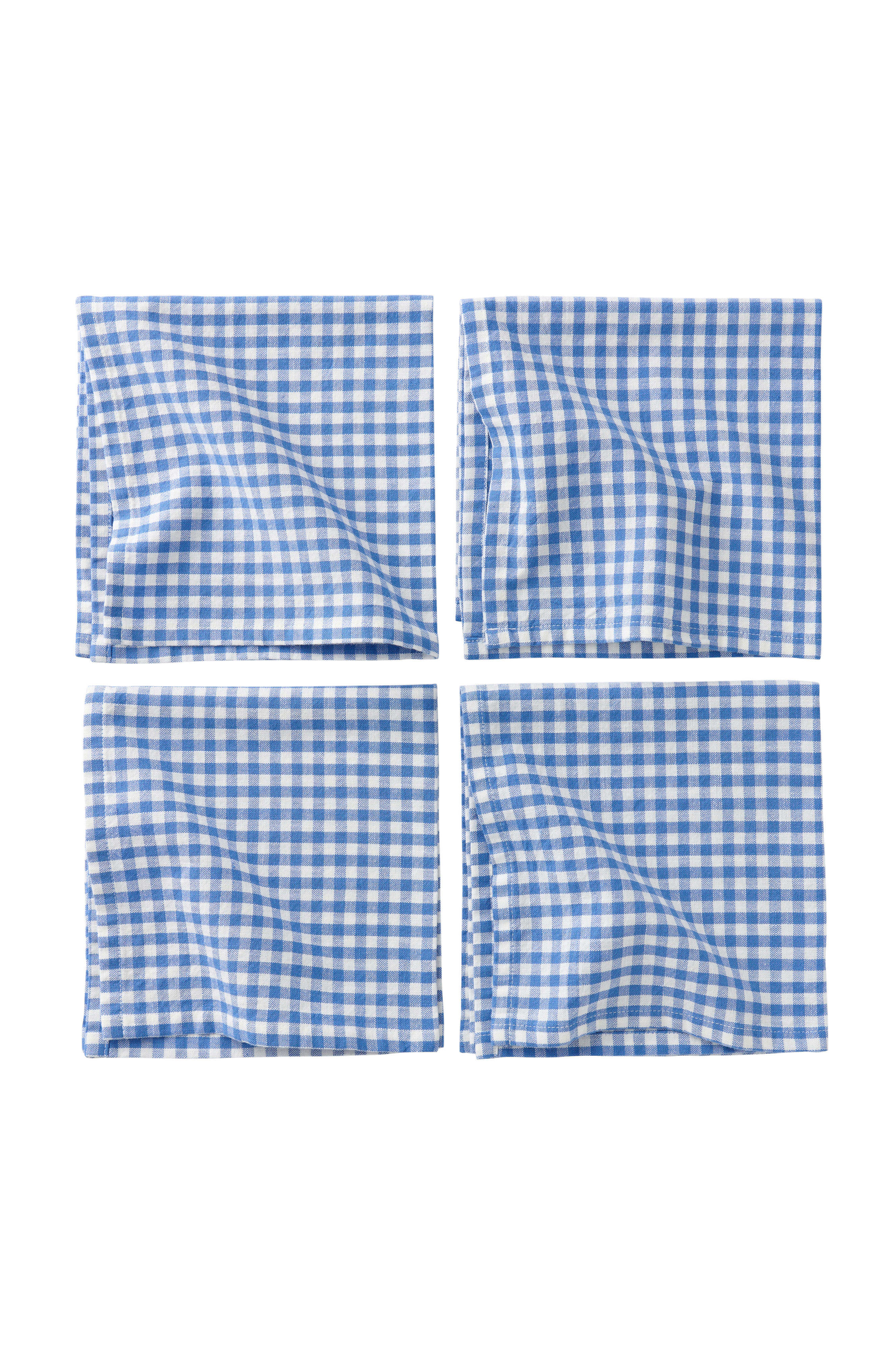 • Fire servietter i bomuld med garnfarvede kvadrater