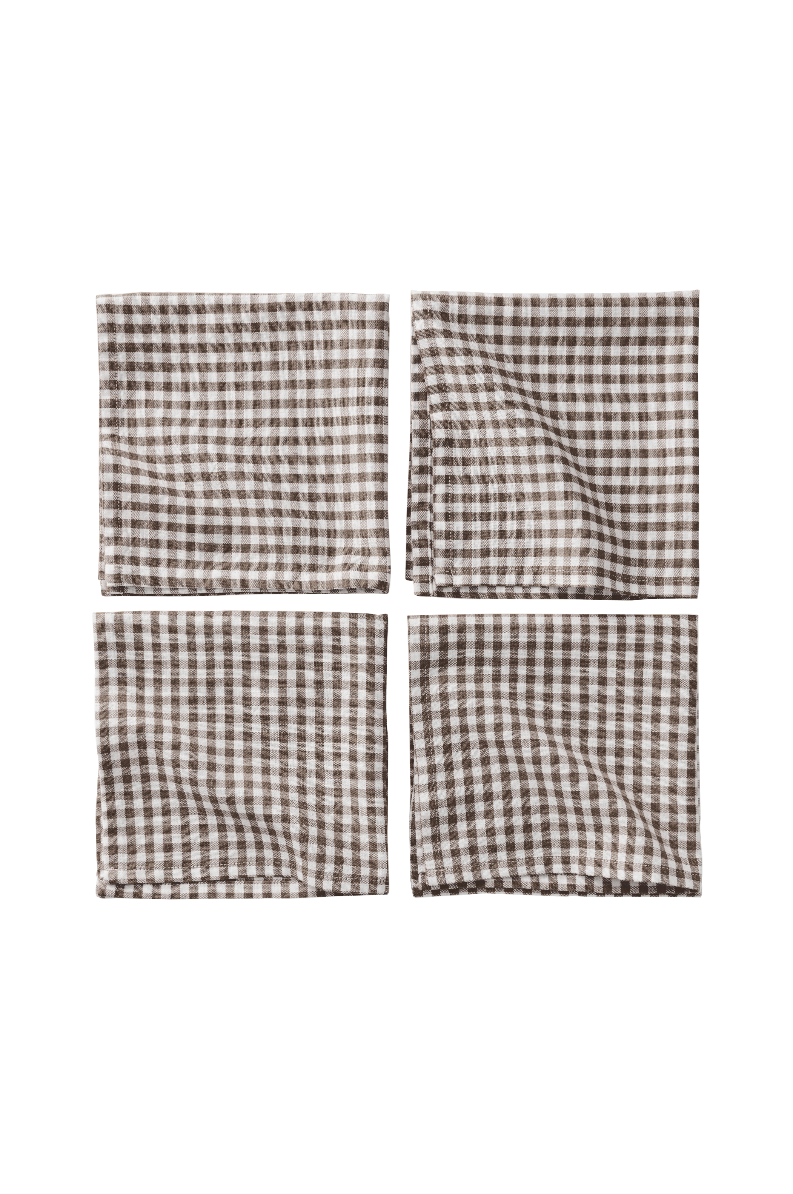 • Fire servietter i bomuld med garnfarvede kvadrater