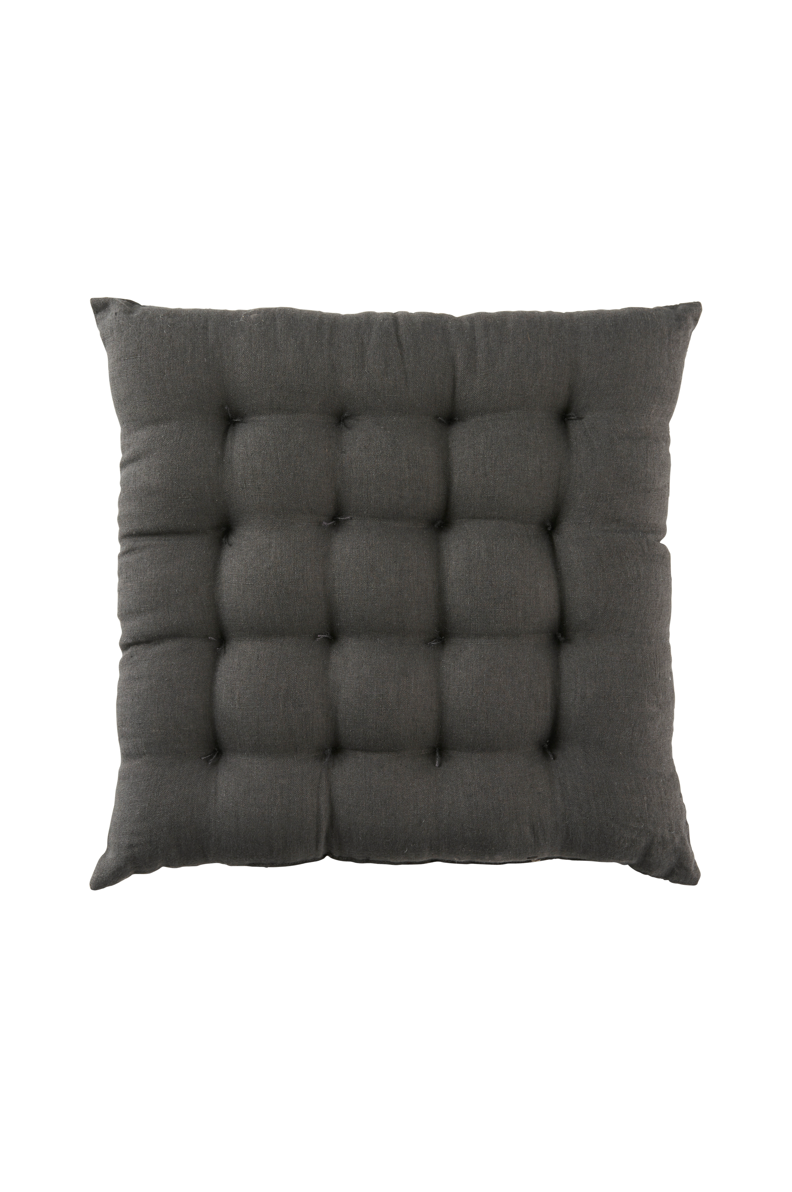 Siddehynde i blød vasket kvalitet af fransk hør med vintagelook og dekorative, håndsyede sting. Fyld af polyester. Str. 40x40x5 cm.