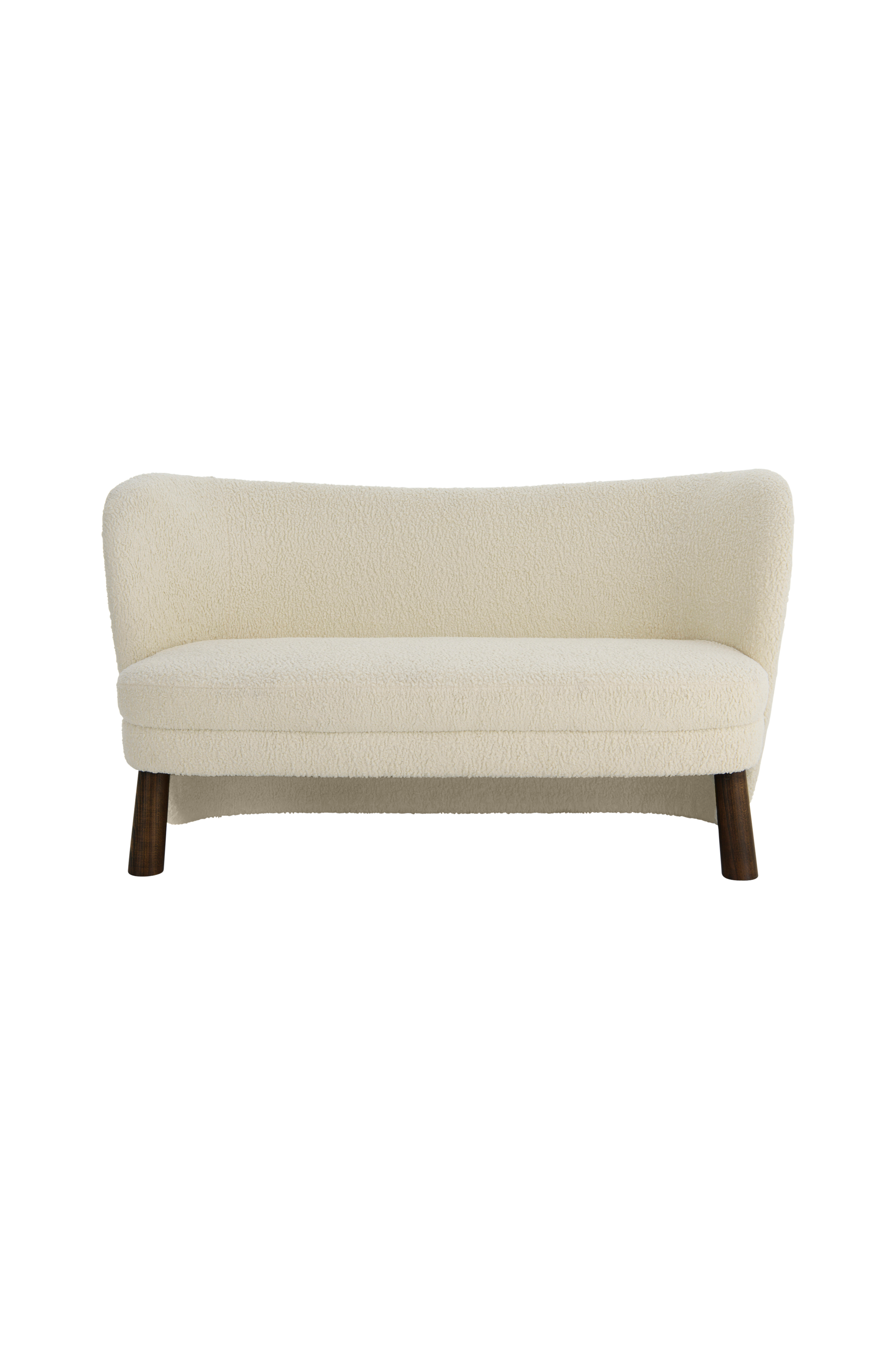 2-pers. sofa i moderne design med ryg som går helt ned til gulvet. Stel i fyrretræ og plywood og ben i FSC-certificeret ask. Betræk i imiteret fåreskind af 100% polyester. S-fjedre og skumpolstring. Frihøjde under møbel 22 cm. Leveres samlet.