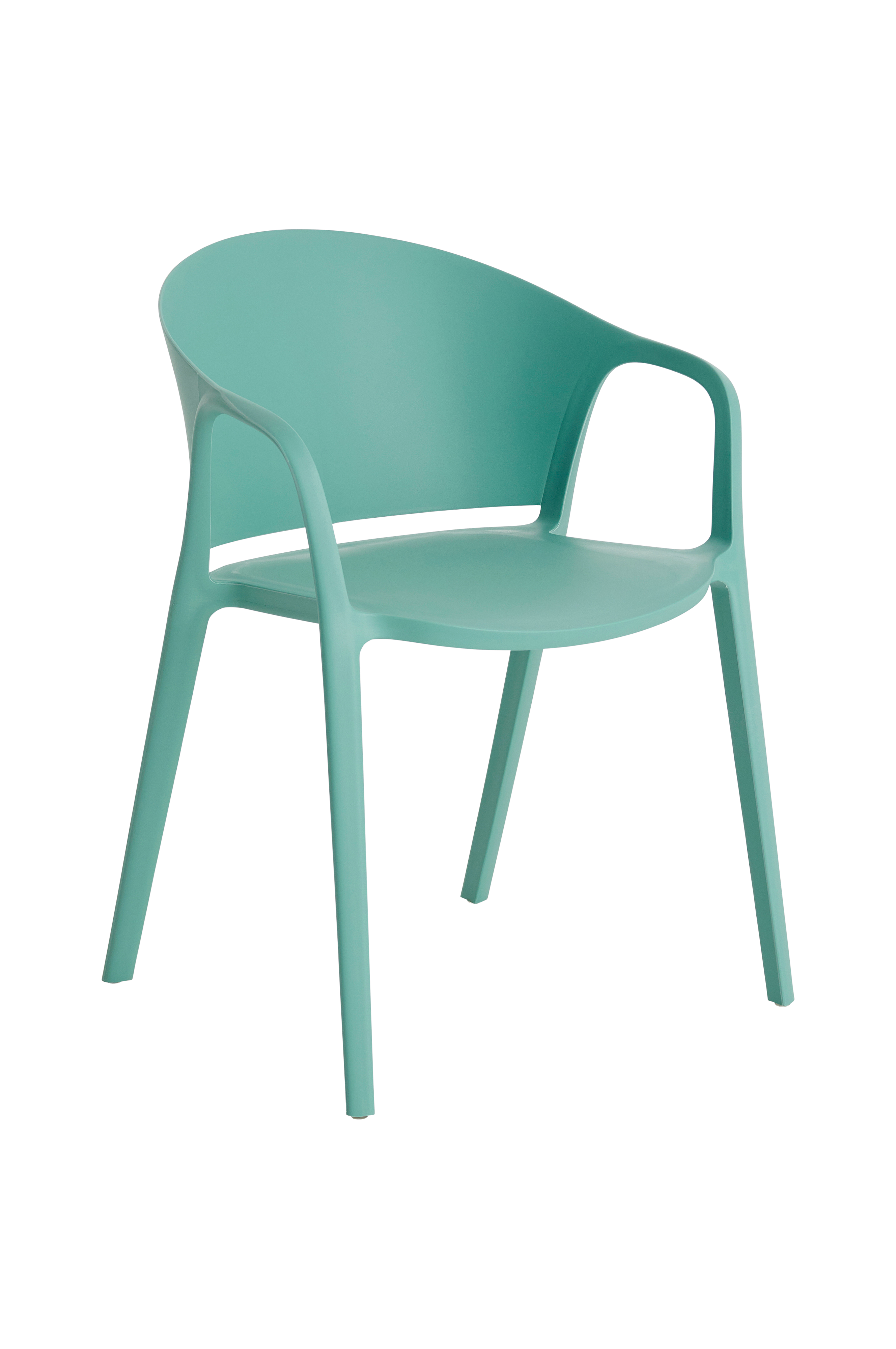 To stole med armlæn i PP-plast med afrundet form. Kan bruges både indendørs og udendørs.