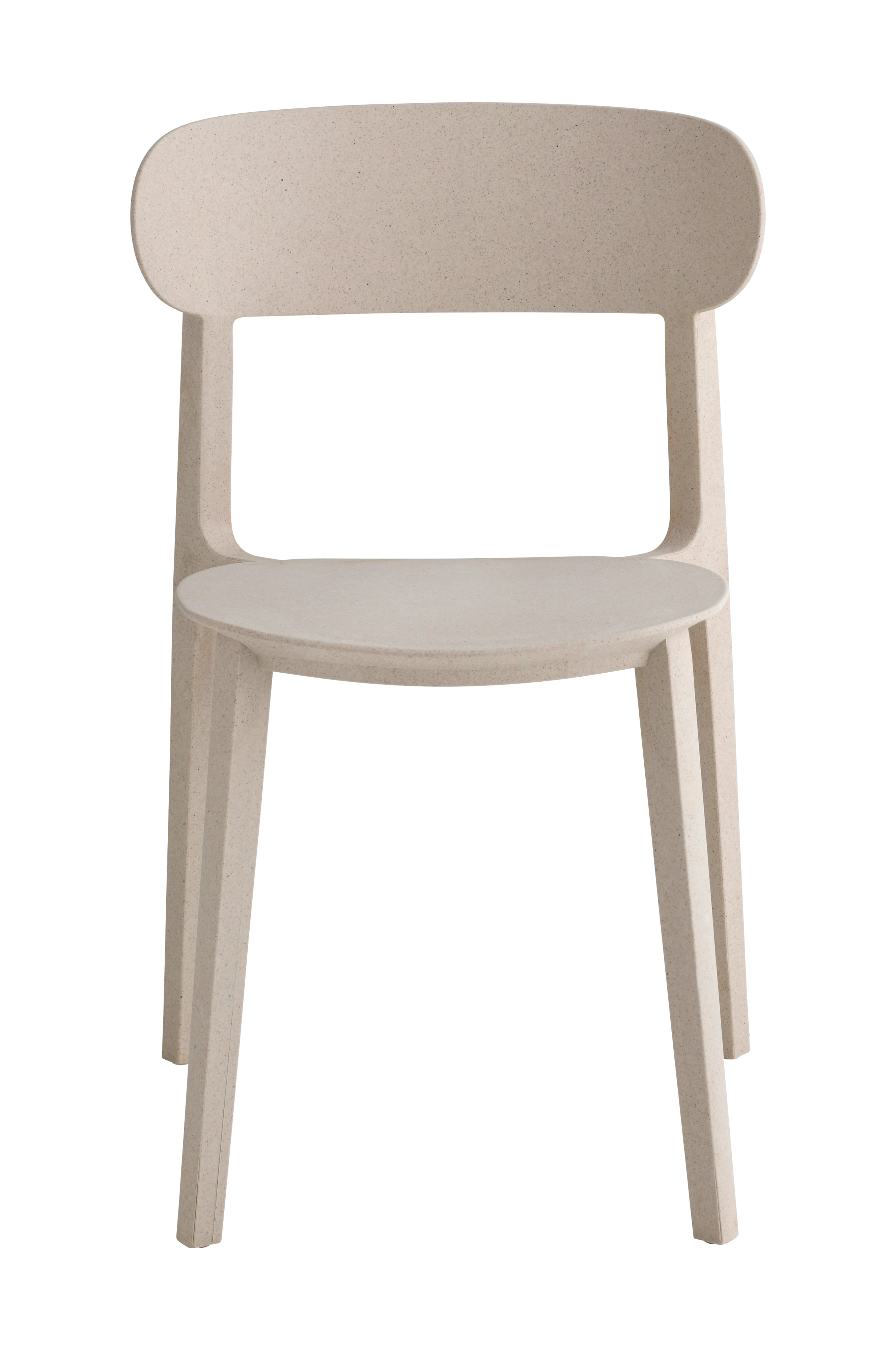 To stole fremstillet i et kompositmateriale af genindvundet plast og genanvendelige træspåner. Stolene er ikke til udendørs brug, men kan bruges i udestuen. Stolene er stabelbare.