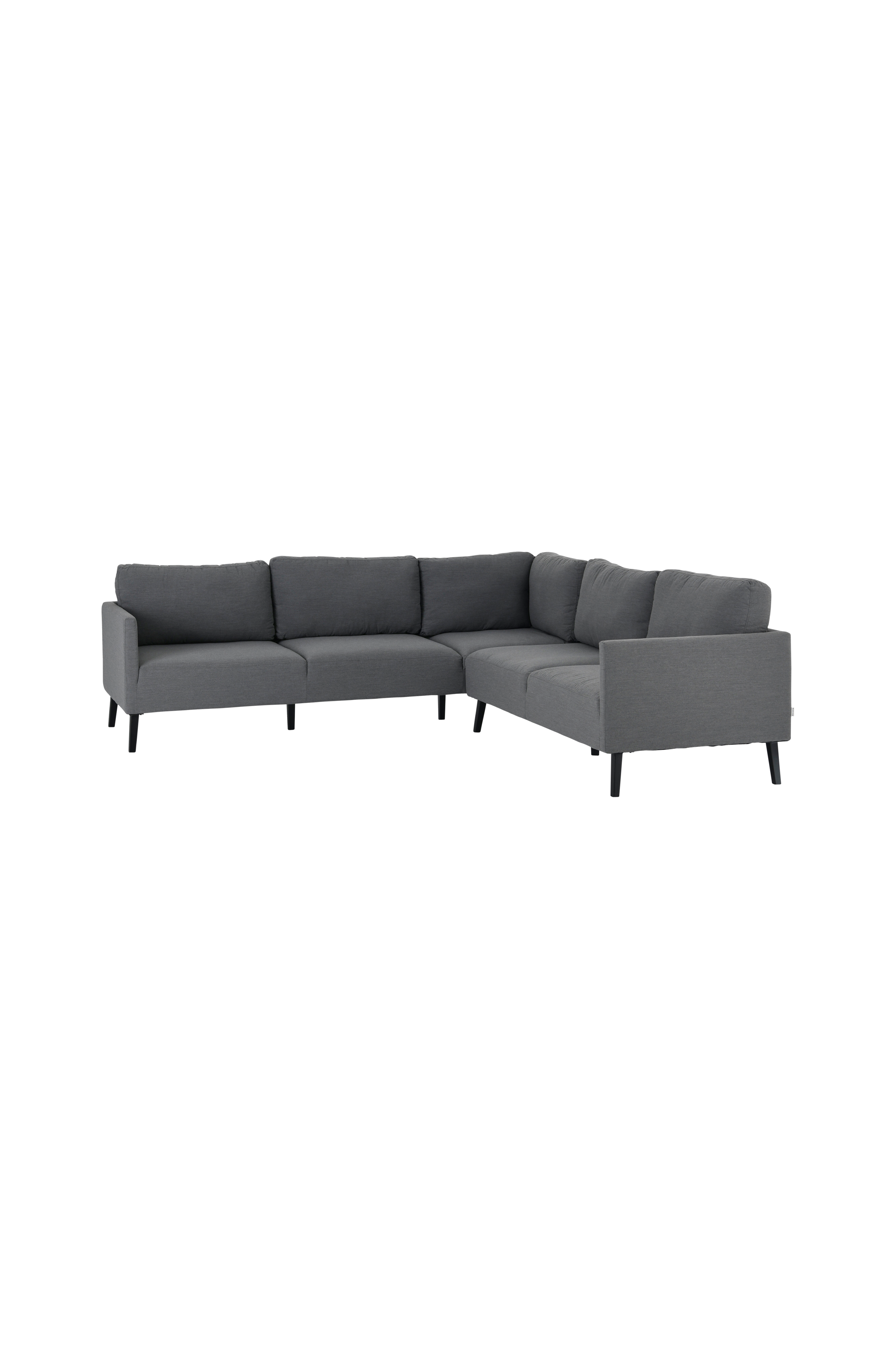 Hjørnesofa som består af en 3-pers. del og en 2-pers. del som samles. Sofaen er lavet i en meget let konstruktion og kan stå ude i al slags vejr, året rundt. Meget let ramme og ben af pulverlakeret aluminium. Betrækket er smuds- og vandafvisende i det unikke, gennemfarvede stof Sunbrella. Stofbetrukket, blødt Quick Dry Foam-skum, der er hurtigtørrende og slipper al vand igennem, så der ikke efterlades noget i møblet. Materialet gør det muligt at bruge møblet ca. 45 minutter efter kraftig regn. Det smudsafvisende stof er let at tørre af og kan højtryksspules. Stoffet er også meget slidstærkt og har høj lysægthed (tåler sol).