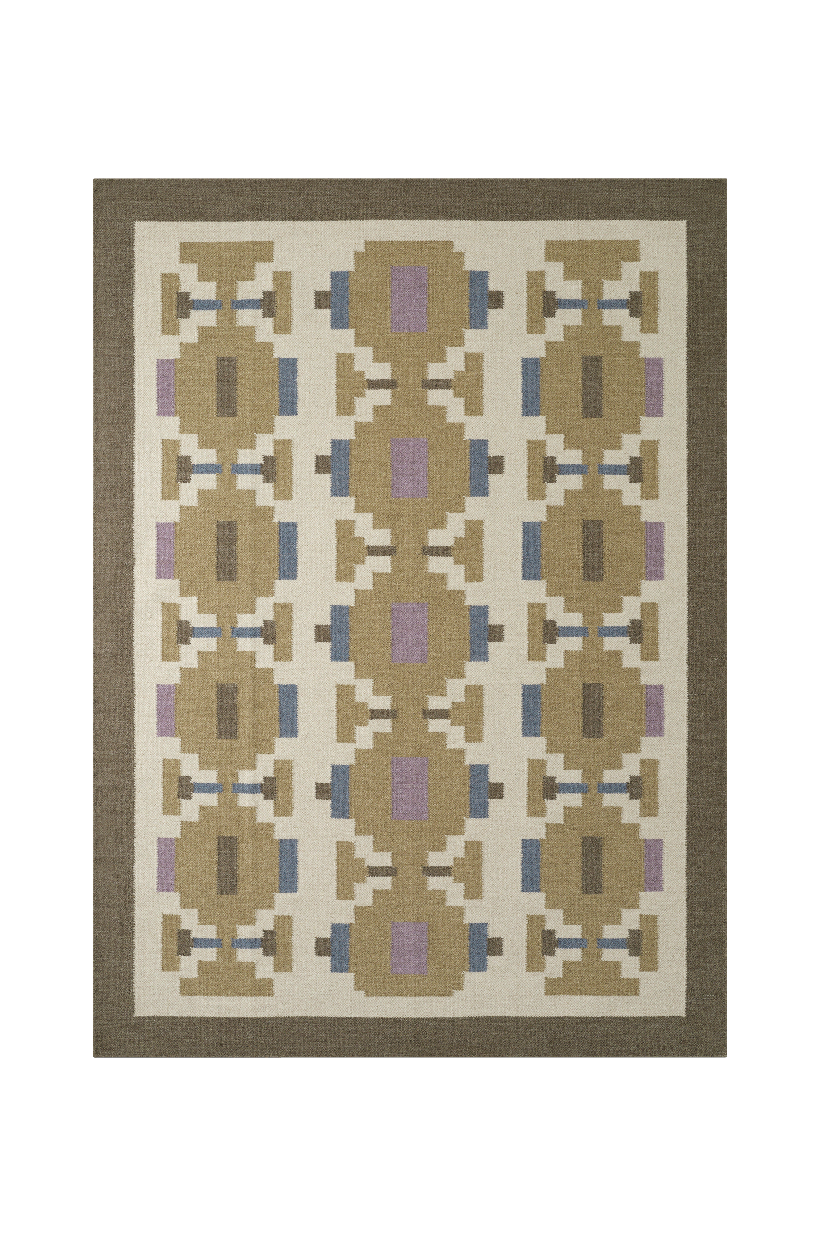 • Håndvævet, glat uldgulvtæppe.