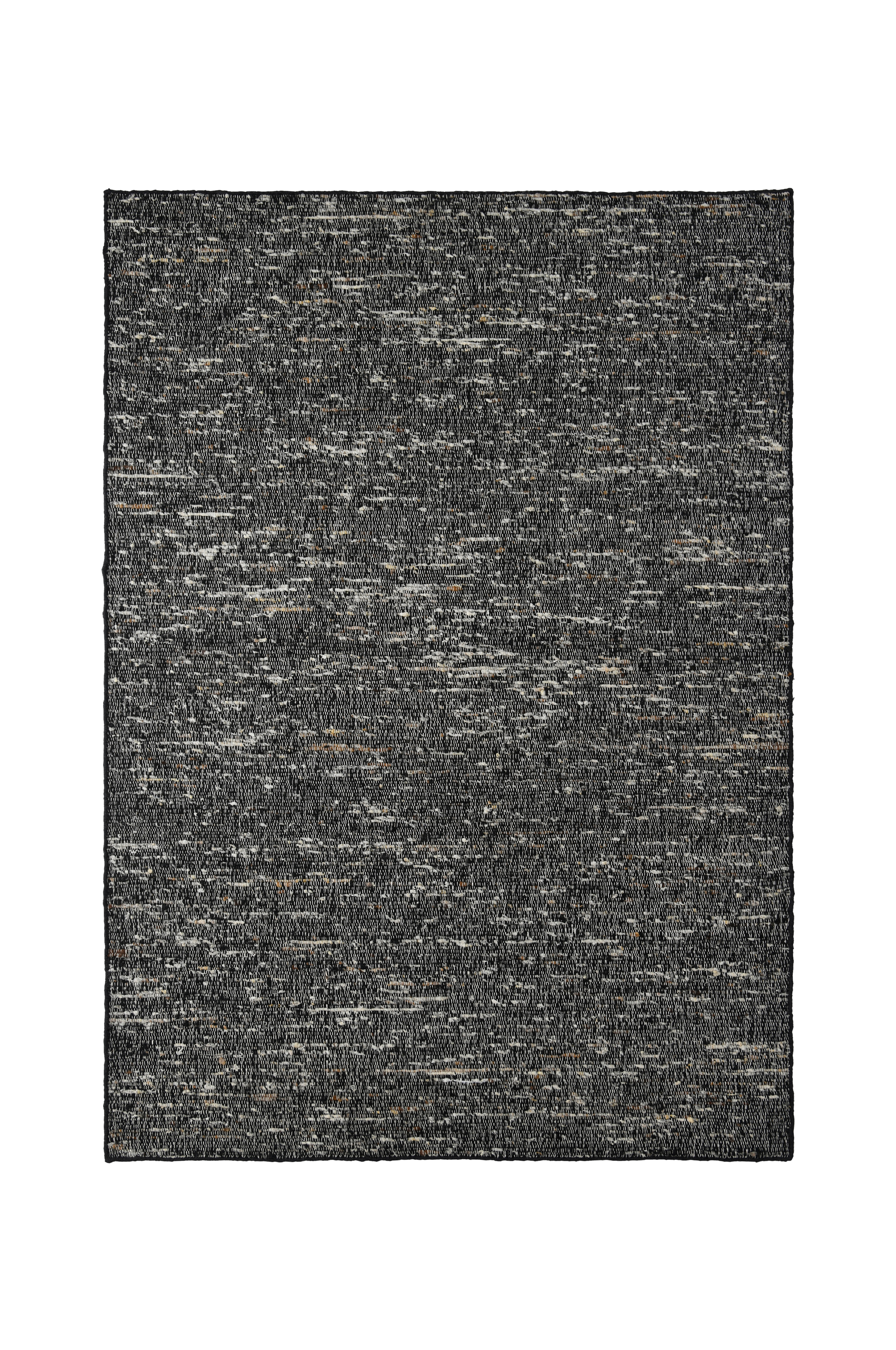 Vævet uldtæppe med mønster i forskellige tykkelser og varierede, uregelmæssige strukturer.