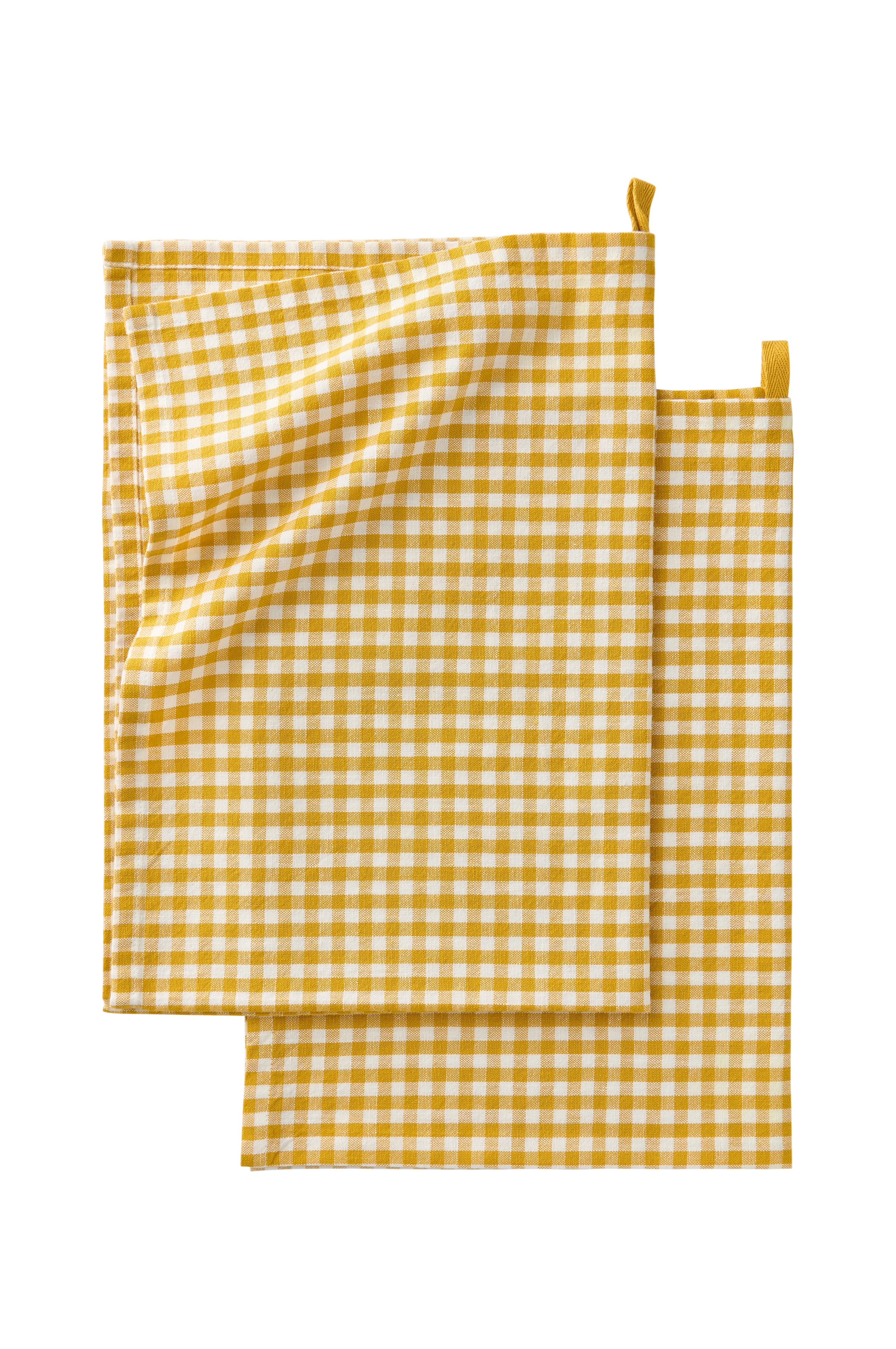 • To viskestykker i bomuld med garnfarvede kvadrater