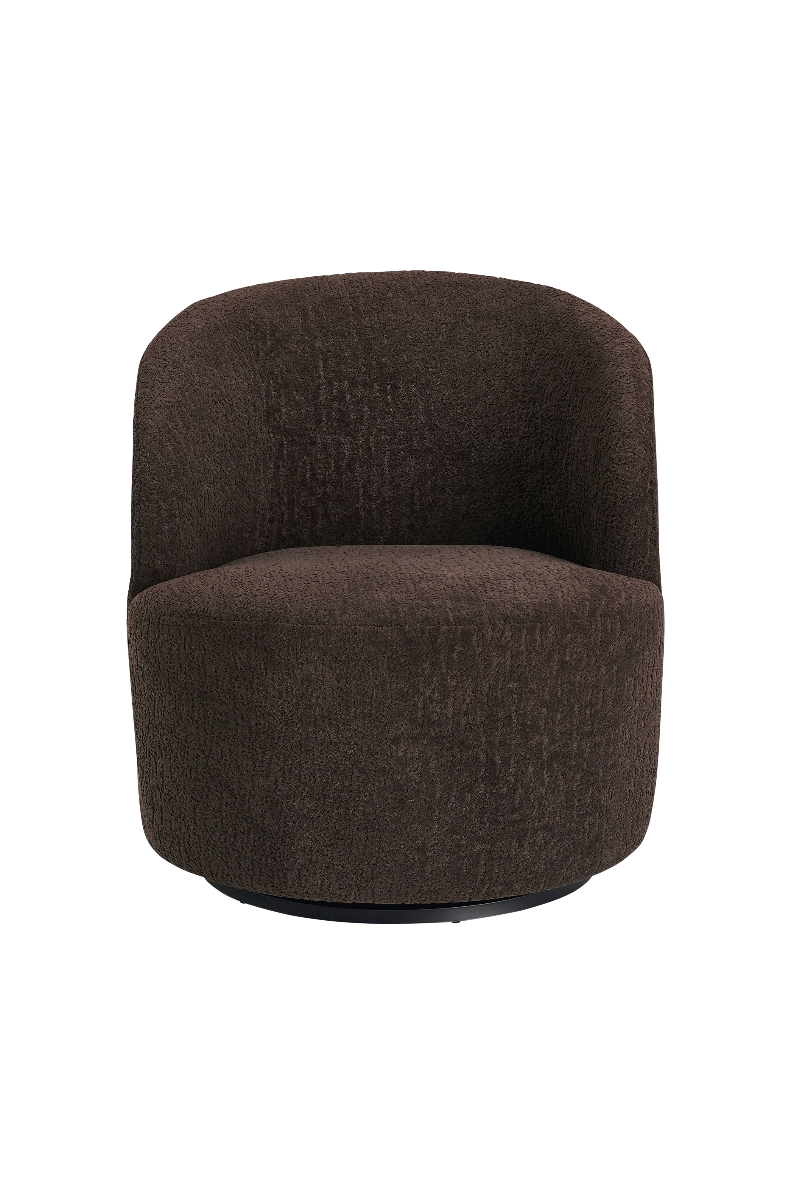 En lænestol med bløde former, der kan dreje rundt i 360 grader.