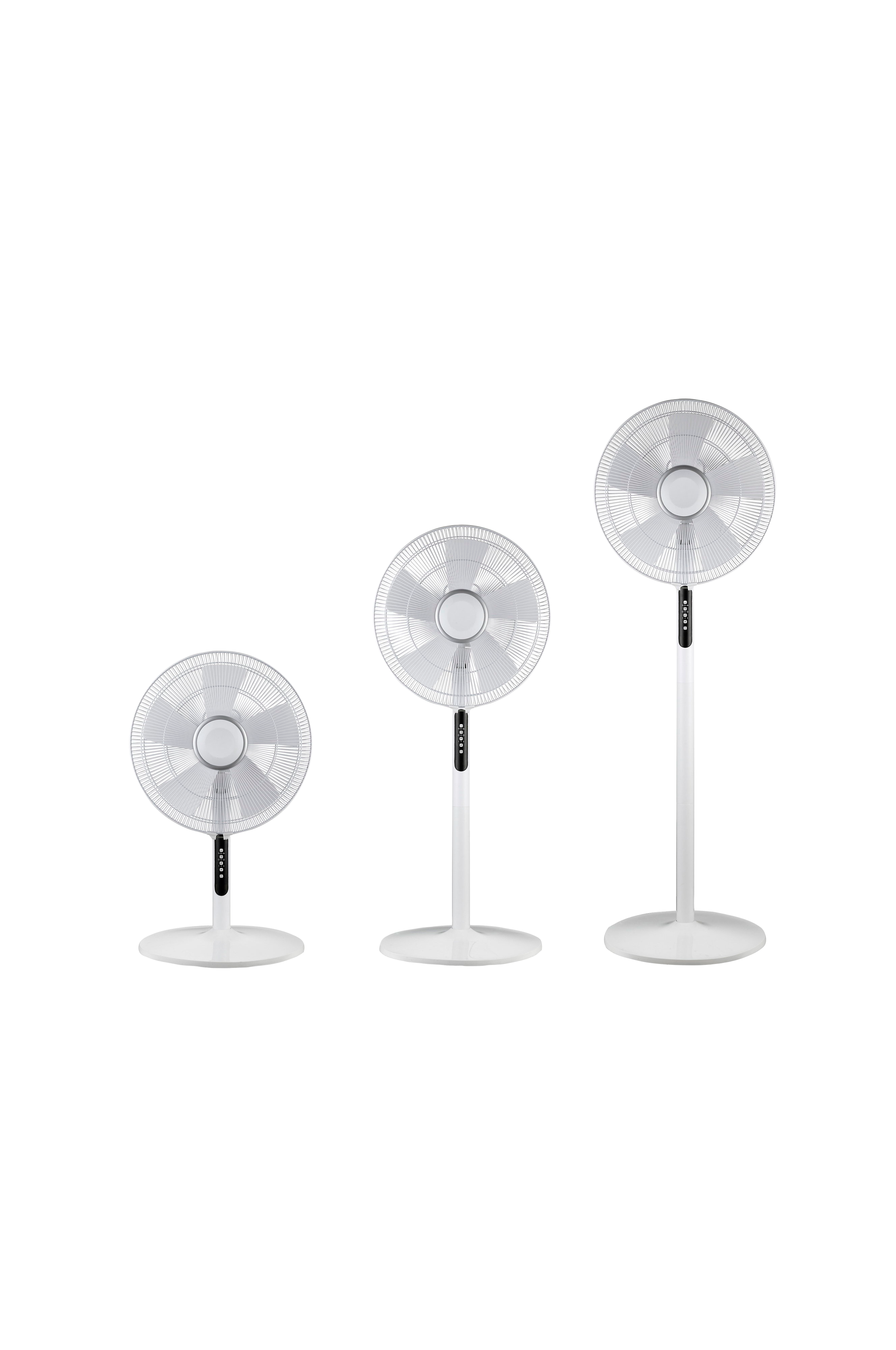 Designet er trendy og stilfuldt i hvid med et digitalt display og en praktisk timerfunktion. Ventilatorens diameter er hele 40 cm og har 5 effektivt kølende ventilatorblade. Med den smarte fjernbetjening kan ventilatorens hastighed, timer og svingfunktion styres. Ventilatorens højde kan også justeres mellem 69 - 100 - 135 cm, og den kan derfor bruges som både bordventilator og gulvventilator, alt efter behov og plads. Med den brede gulvplade står ventilatoren stabilt på gulvet eller på bordet.