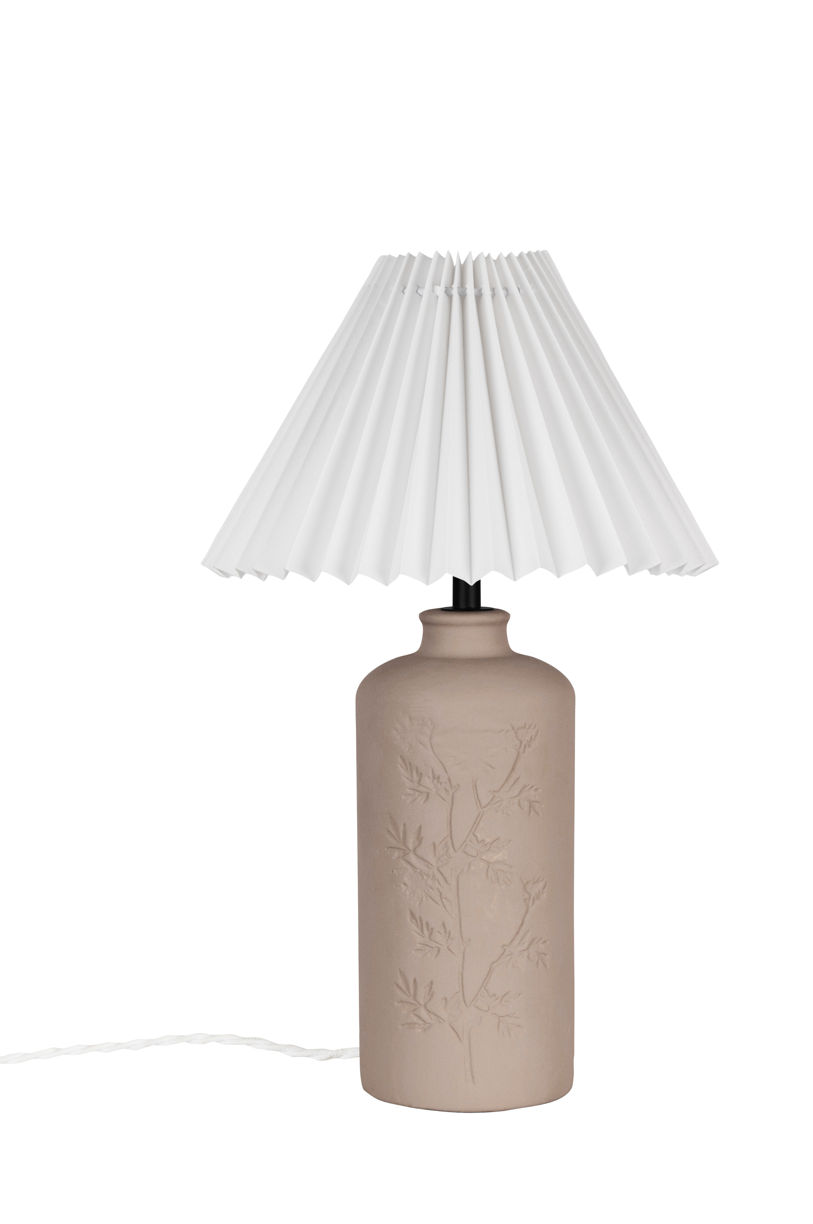 Lampeserien Flora er et unikt designsamarbejde mellem kreatøren Johanna Berglund og Globen Lighting. Johanna ville designe en lampe som var skabt af materialer, farver og former, der afspejles i naturen og som passer ind i både et landligt og et moderne miljø. Lampefoden er af keramik og har en medfølgende plisseret tekstilskærm. Et mønster af blomsten kongekommen er presset ind som en smuk detalje på den ene side af lampefoden, hvilket giver et ægte rustikt look. Lampen har en 200 cm lang snoet stofledning med afbryder og stik. Design: Johanna Berglund.