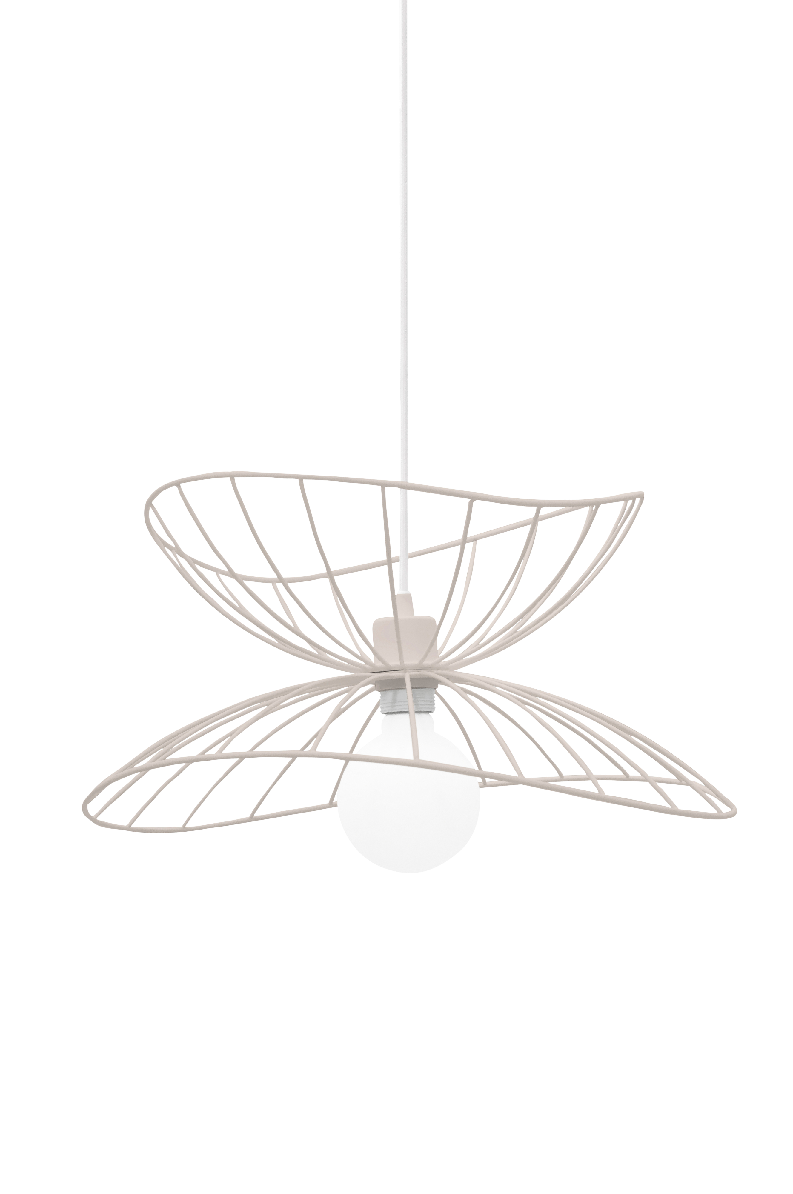 Den bløde og grafiske loftlampe Ray i mat hvidlakeret metal, der ligesom en rokke er bølgeformet i yderkanten. Vælg selv, hvordan du vil arrangere de to skærme - oven på hinanden eller inden i hinanden for at få en lavere pendel. Lampen har en 120 cm lang hvid stofledning med wire samt matchende baldakin i mat hvidlakeret metal. Design, Patrick Hall. Bredde: 45 cm, dyb 45 cm og højde 15-25 cm. Fatning: 1xE27. Maks. 60 W. Pære medfølger ikke.