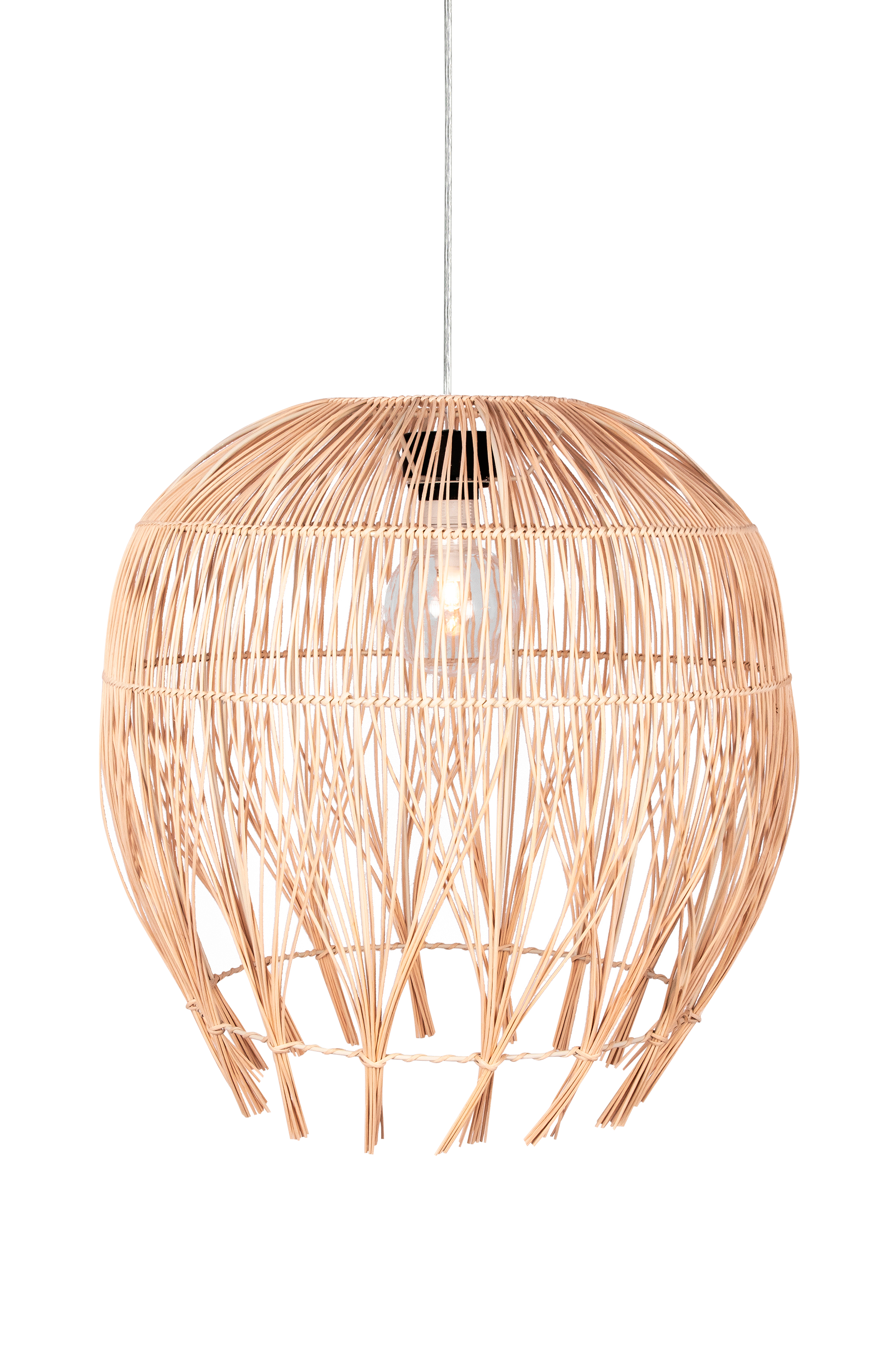 Montego er en naturinspireret lampeskærm som med sin flettede rotting har et trendy udtryk. Denne lampeskærm er fremstillet af rotting og ophæng købes separat. Skærmen kan hænges udendørs, men bemærk at vind og vejr naturligvis kan forandre udseende på naturmaterialer. Skærmen har bærering beregnet for ophæng med E27-sokkel. Kombinér med outdoor-ophæng ved udendørs ophængning. Diameter 50 cm og højde 51 cm. Fatning: 1xE27 bærering. Ophæng og pære sælges separat.