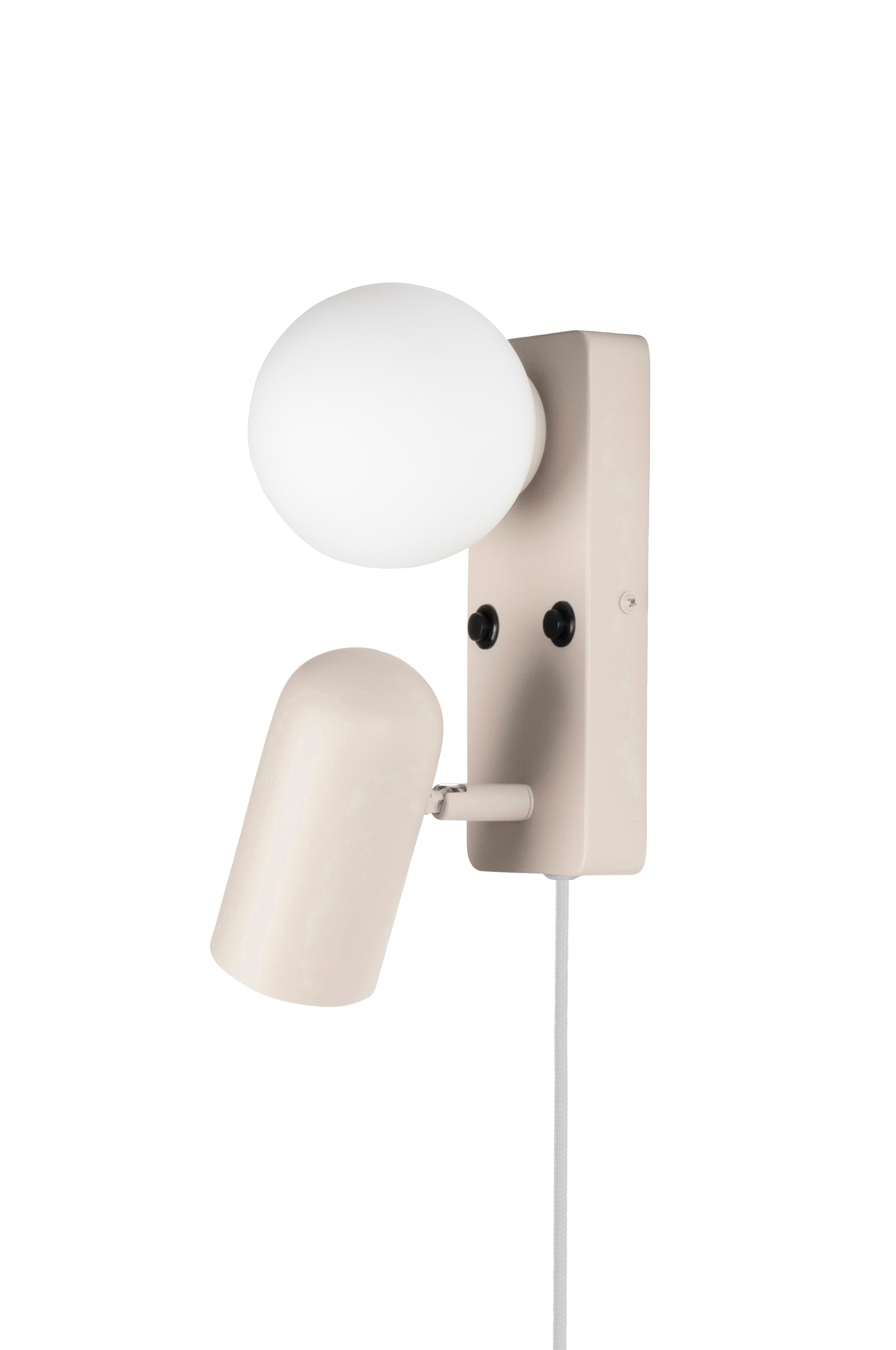 Doppio er en alsidig væglampe, der oplyser dit hjem med sine to lyspunkter. Lampen er lavet af glas og metal i afdæmpede farver og har et 200 cm langt hvidt tekstilkabel med europastik. Lampen kan nemt bruges til fast installation, hvis det ønskes.