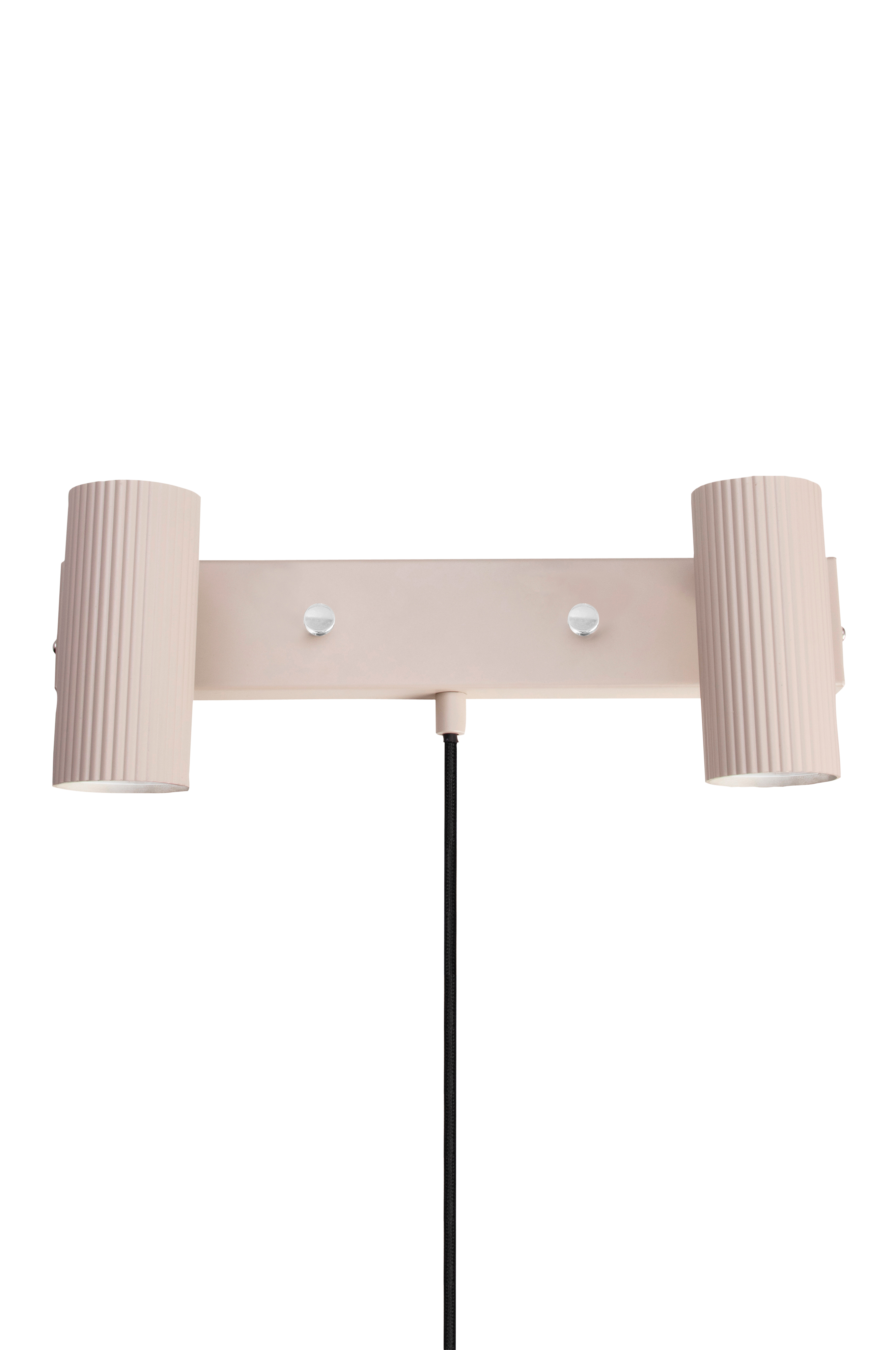 Væglampe Hubble 2 Hubble er en moderne væglampe med to rørformede og rillede skærme af metal. Skærmen er justerbar i højden og til siden. Lampen har en 200 cm lang stofledning med stik. Kontakterne er placeret på vægpladen (tænd/sluk, ikke lysdæmper). Lampen kan nemt bruges til fast montering, hvis det ønskes. Design: Patrick Hall. Fatning: 2xGU10 28W. Pære medfølger ikke.